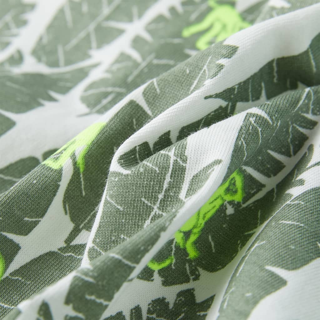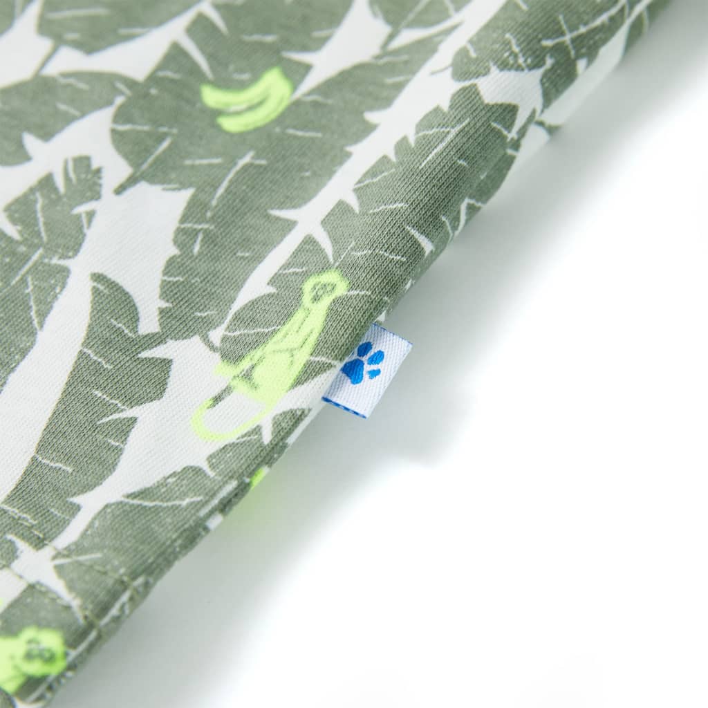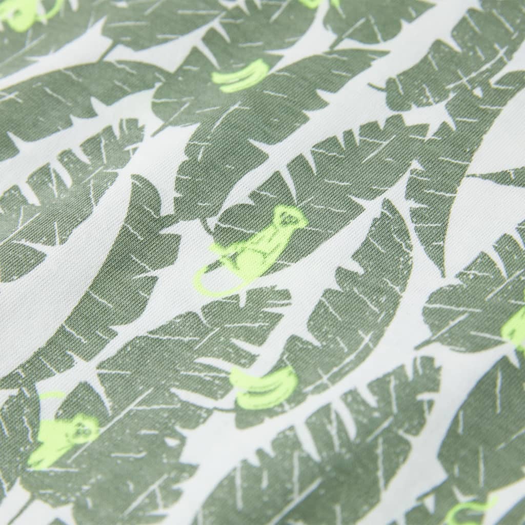 Toto detské tričko má krátke rukávy, okrúhly výstrih a rovný strih. Detské tričko je celoplošne potlačené listami a malými opičkami. Detské tričko s krátkym rukávom je vyrobené zo 100% bavlny pre mäkkosť a pohodlné nosenie.