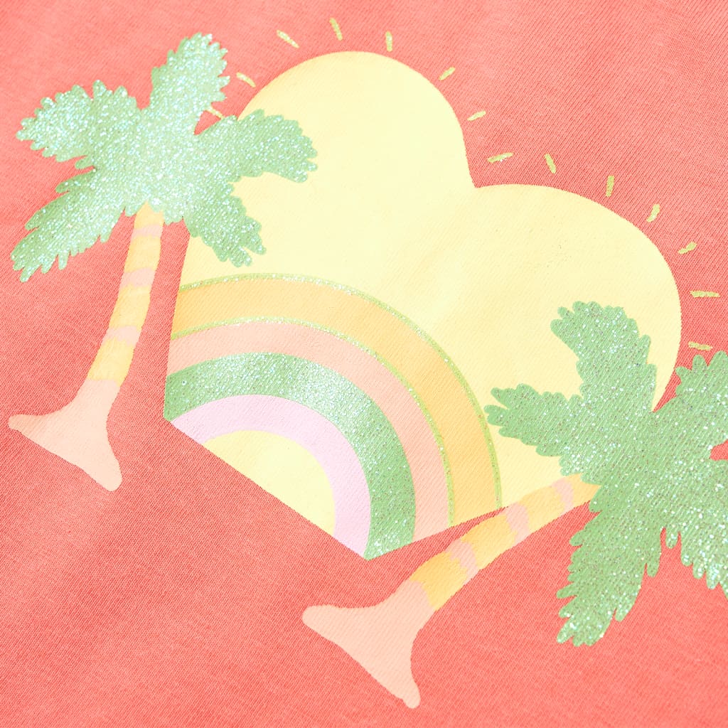 Toto detské tričko má krátke rukávy, okrúhly výstrih a rovný strih. Toto tričko má na hrudi potlač dúhy a paliem. Detské tričko s krátkym rukávom je vyrobené z 95% bavlny a 5% elastanu pre pohodlie a priedušnosť.
