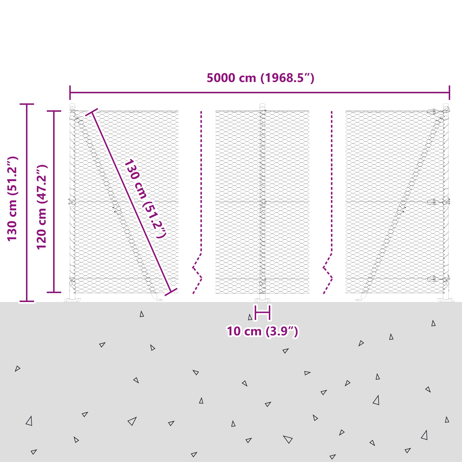 Hexagonálna brána vidaXL Sivá 1.2x50 m Oceľ, Bránkové stĺpy vidaXL so základnými doskami 13 ks Ø32mm 68.5cm Galvanizovaná oceľ