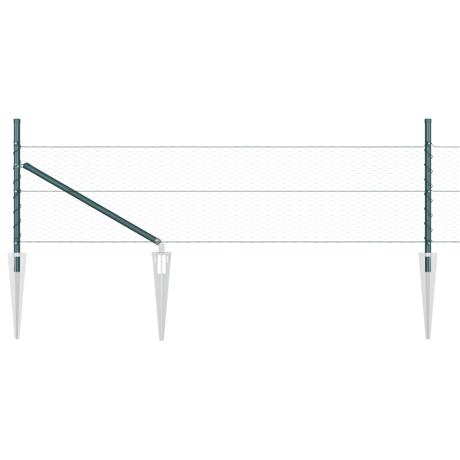 Hexagonálny plot vidaXL Zelený 0.4×25 m Oceľ, Kus plotov vidaXL so špicom 13 ks Ø32 mm 60 cm Pozinkovaná oceľ