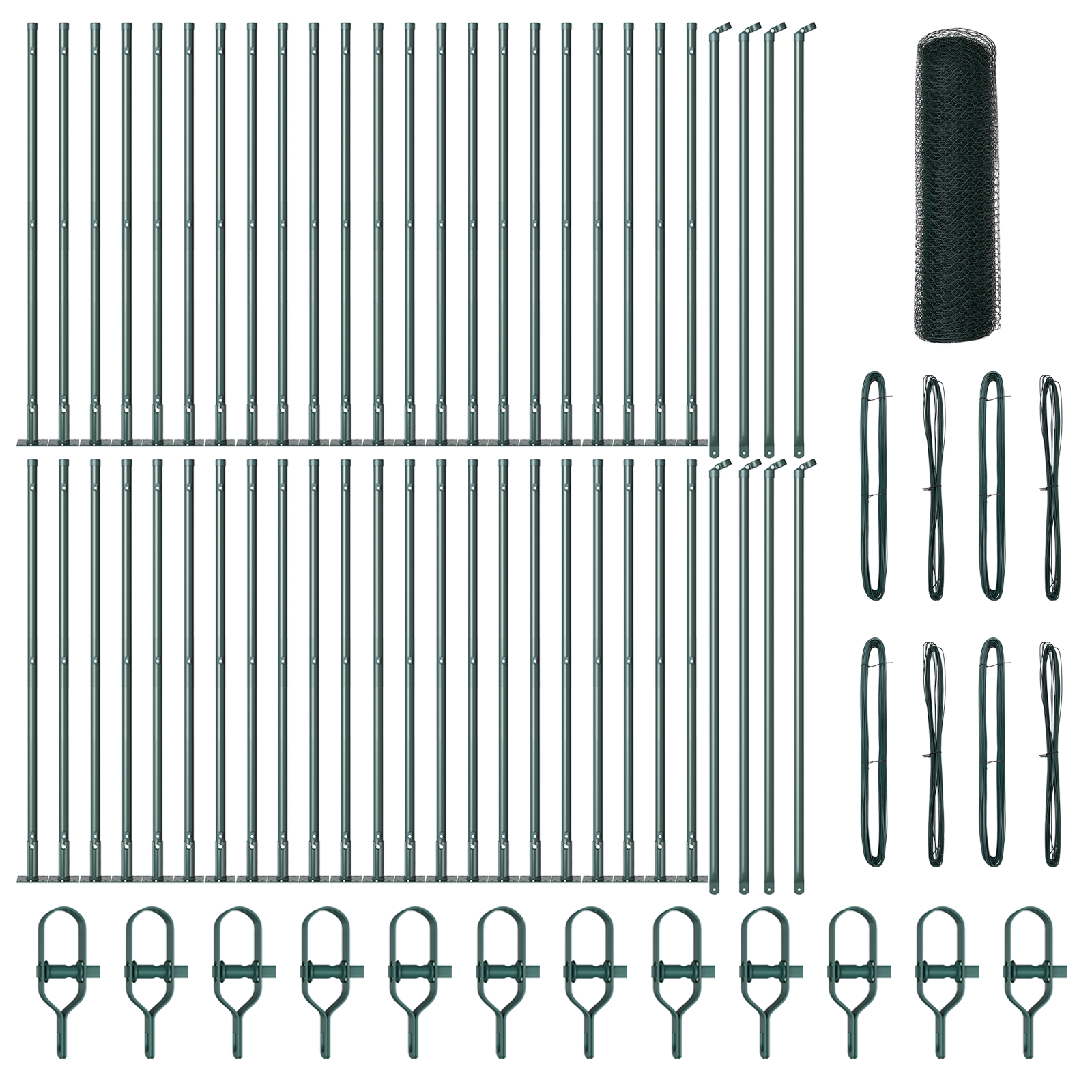 Hexagonálny plot vidaXL Zelený 0,4×100 m Oceľ, Stĺpy plotu vidaXL s podlážkami 13 ks Ø32mm 50cm Železo pozinkované