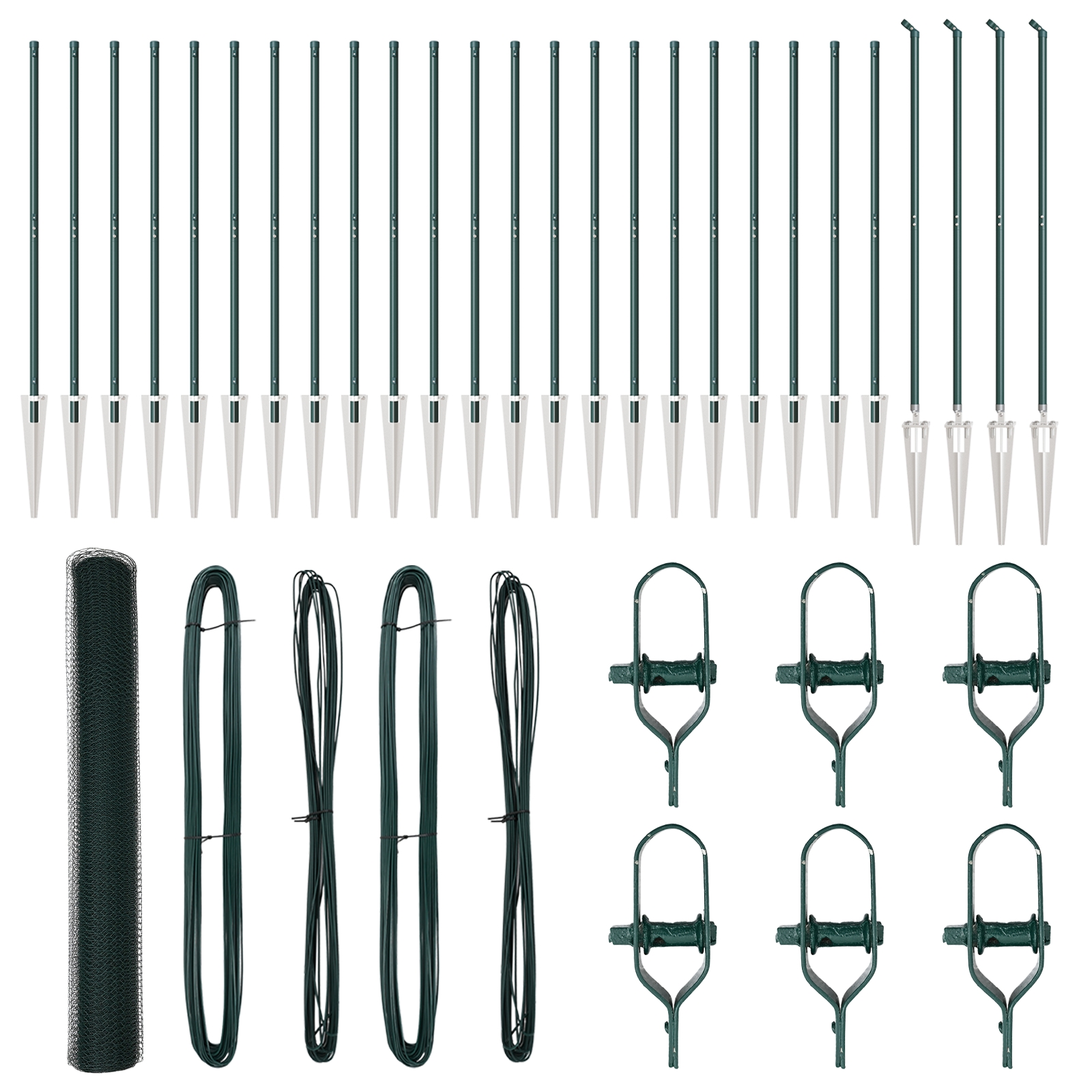 • Úplná sada zahrnutá: Získate všetko potrebné na montáž vrátane pevných stĺpov na plot, roliek pletiva, viazacích drôtov, zarážok a svoriek.