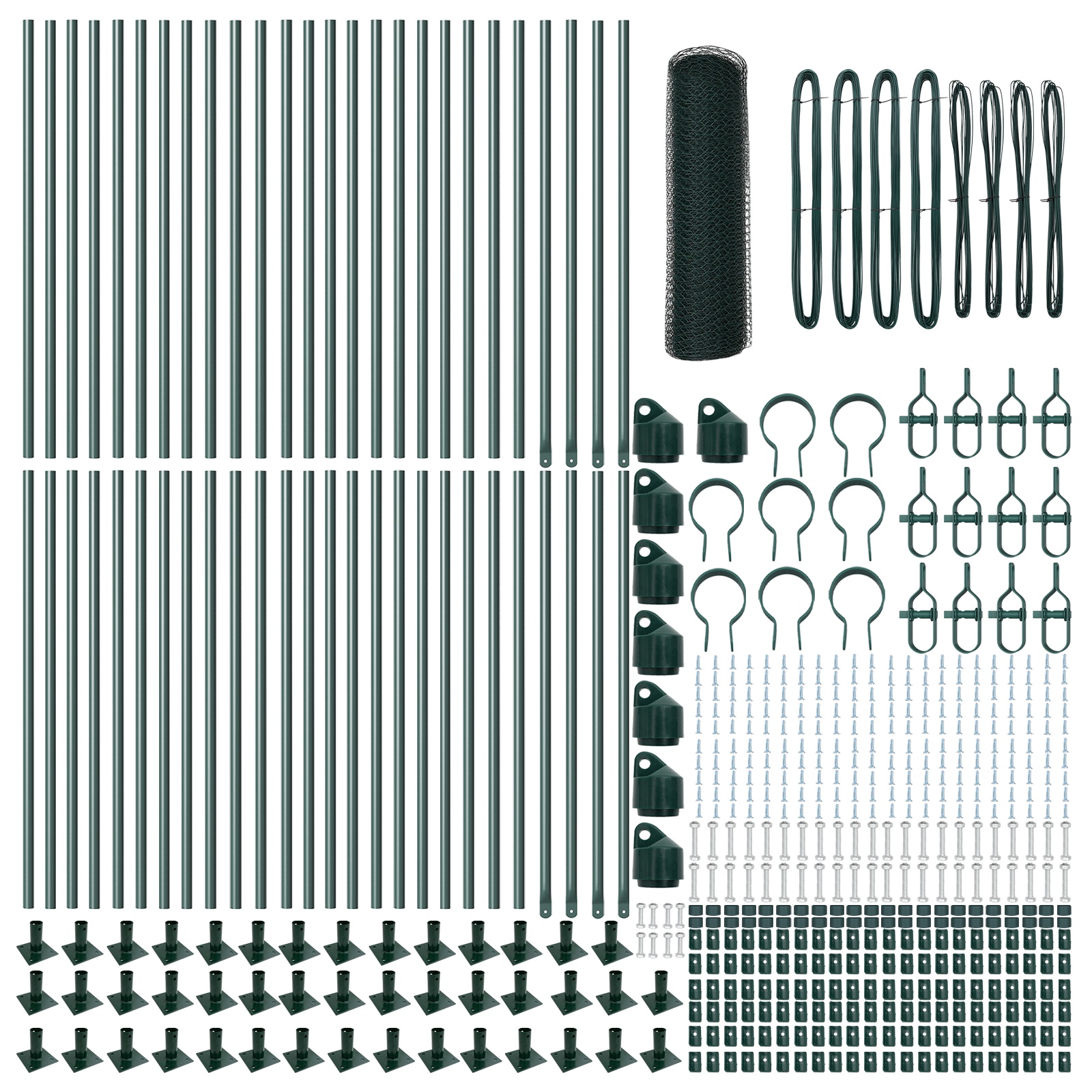 Hexagonálny plot vidaXL Zelený 1x100 m Oceľ, Plotové stĺpiky vidaXL s podložkami 13 ks Ø32mm 110cm Galvanizovaná oceľ