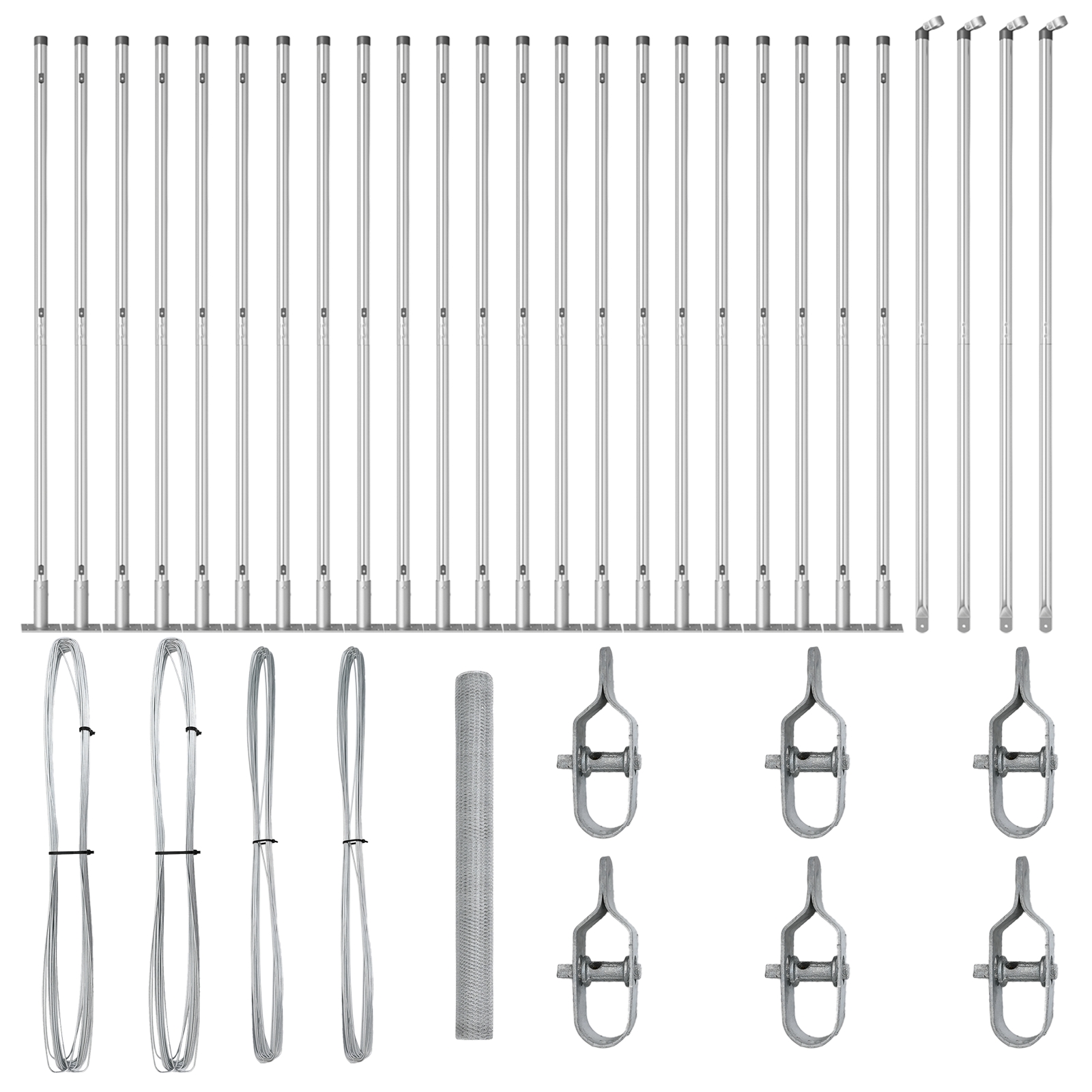 Hexagonový plot vidaXL 1.4x50 m Pozinkovaná oceľ, Železné stĺpy vidaXL s podlahovými doskami 13 ks Ø32mm 78.5cm Pozinkovaná oceľ