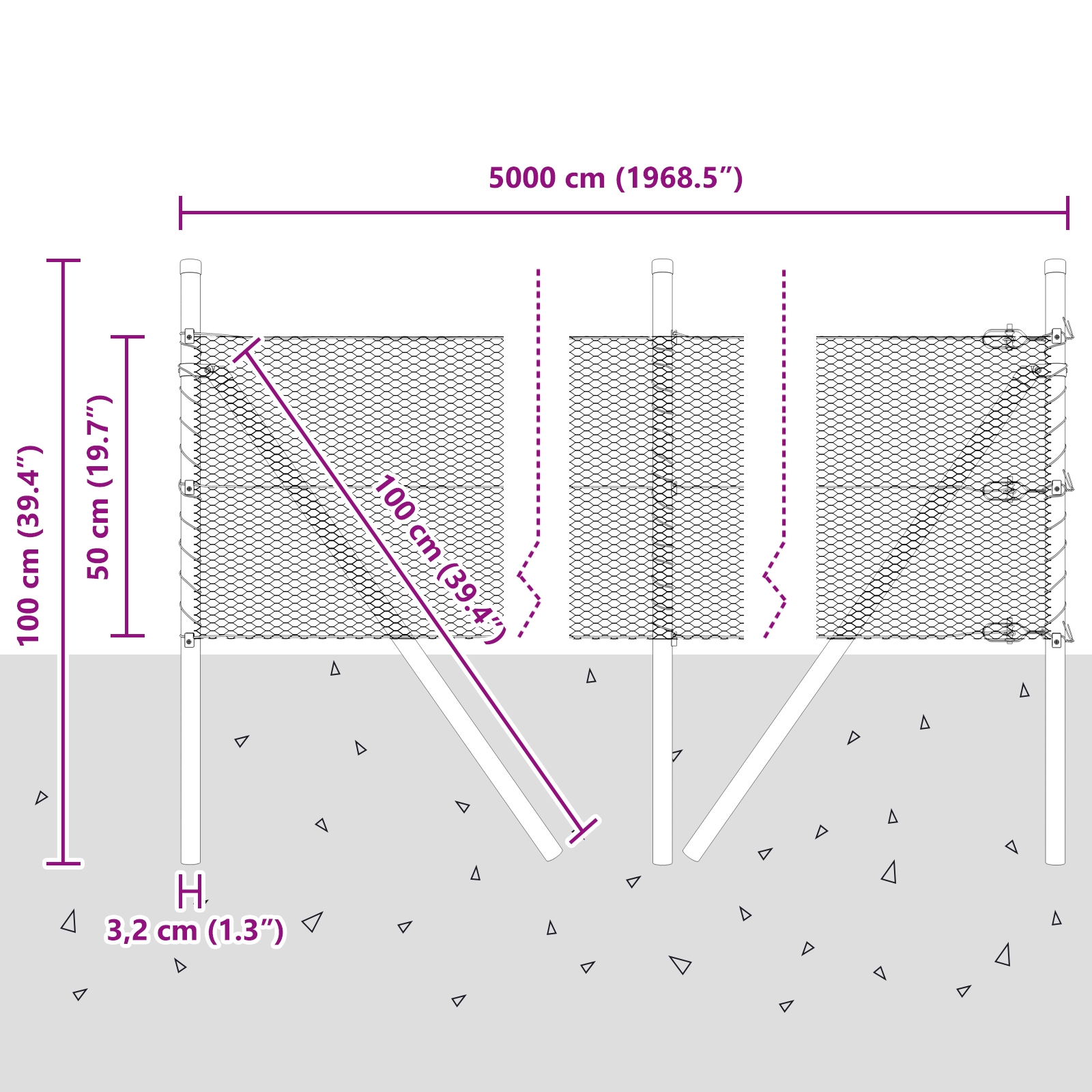 Hexagónový plot vidaXL Zelený 0.5×50 m Oceľ, Plotové stĺpy vidaXL 13 ks Zelené Ø32 mm 100 cm Pozinkovaná oceľ