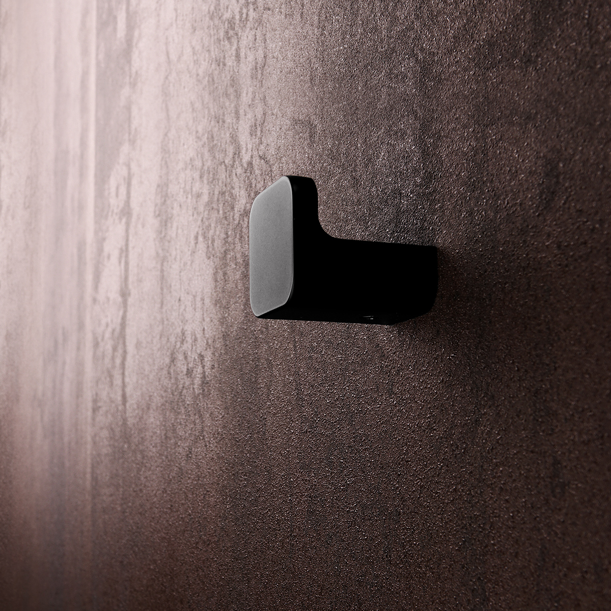 Háček jednoduchý bude koupelně slušet mnohem více, pokud zvolíte i další doplňky série Maya černá z nabídky koupelnových a WC doplňků NIMCO.