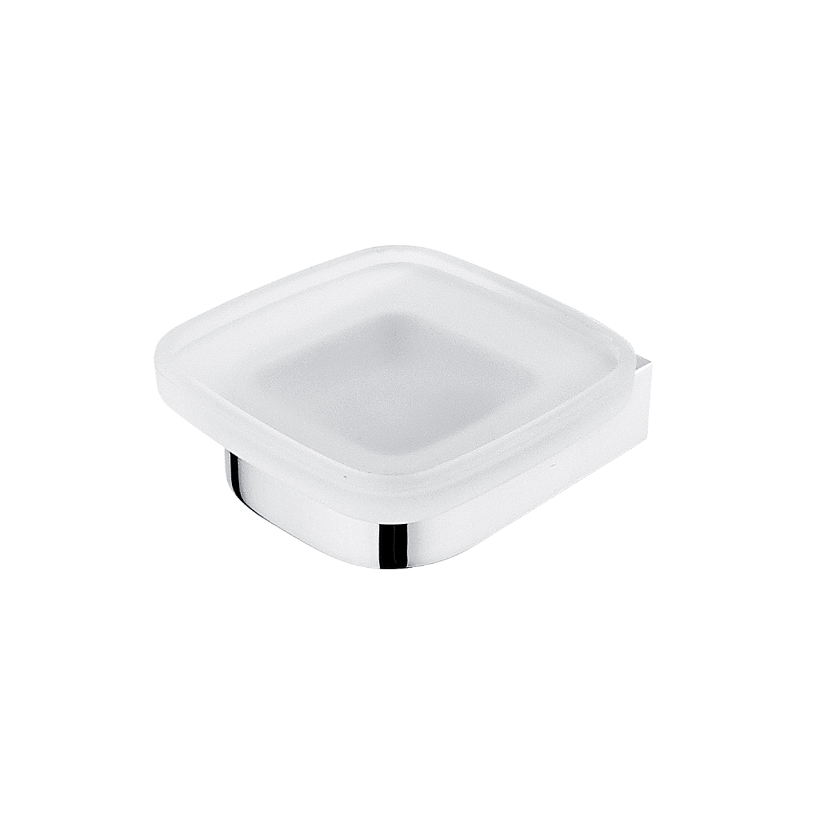 Mýdlenka nástěnná skleněná bílý mat, držák chrom je skvělým doplňkem do koupelny.