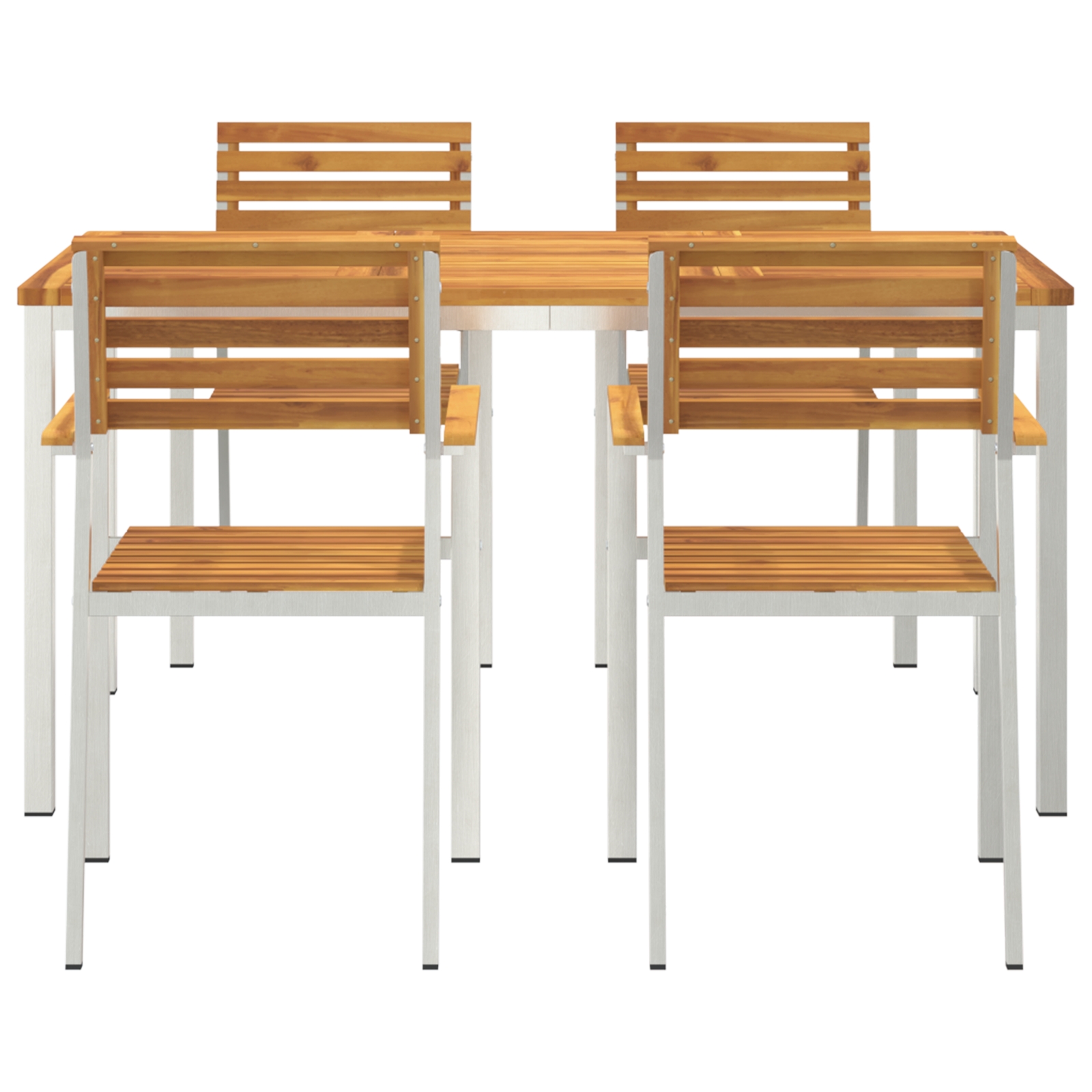 Súprava na večeru vidaXL 5-dielna z masívnej akácie, Vonkajší stôl vidaXL 150x90x75 cm z masívnej akácie, Stohovateľné záhradné stoličky 4 ks z masívnej akácie a ocele
