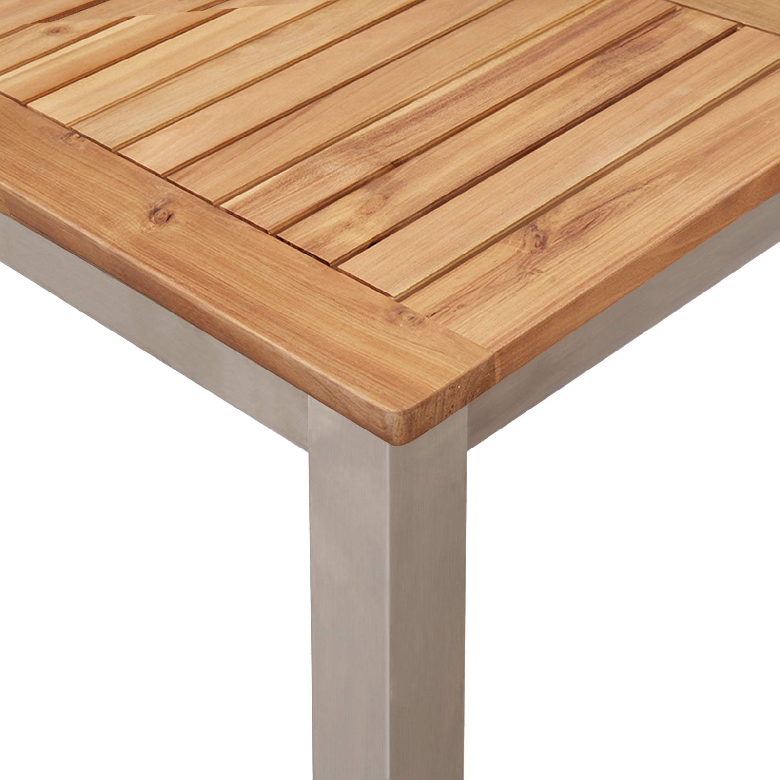 • ‘Trvácnosť’ výrobku spočíva v masívnom akáciovom dreve a práškovo lakovanom oceľovom ráme, čo zaručuje odolnosť voči hrdzi a poveternostným podmienkam, pričom sľubuje dlhú životnosť.