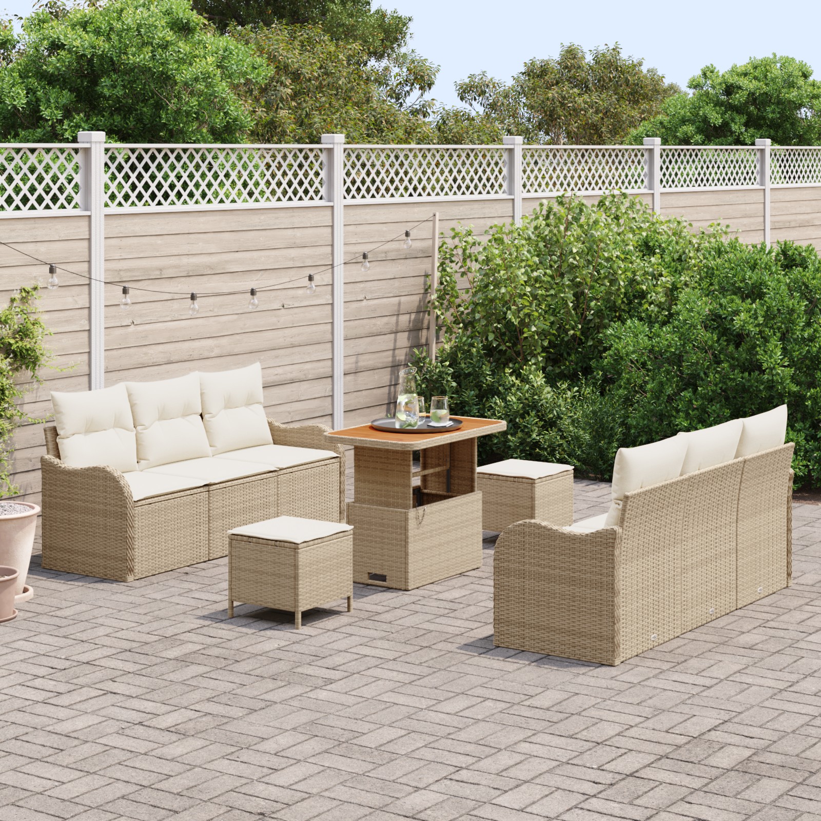 Súprava vidaXL 9-dielna modulárna záhradná pohovka dodáva vonkajšiemu sedenie šmrnc, s jej štýlovým mixom béžového poly ratanu a prestarnutého pevného akáciového dreva. Ideálna pre balkóny, terasy alebo záhrady, táto súprava nielenže zvyšuje tvoj vonkajší štýl, ale aj poskytuje dostatok pohodlia pre stretávanie alebo relaxovanie.
