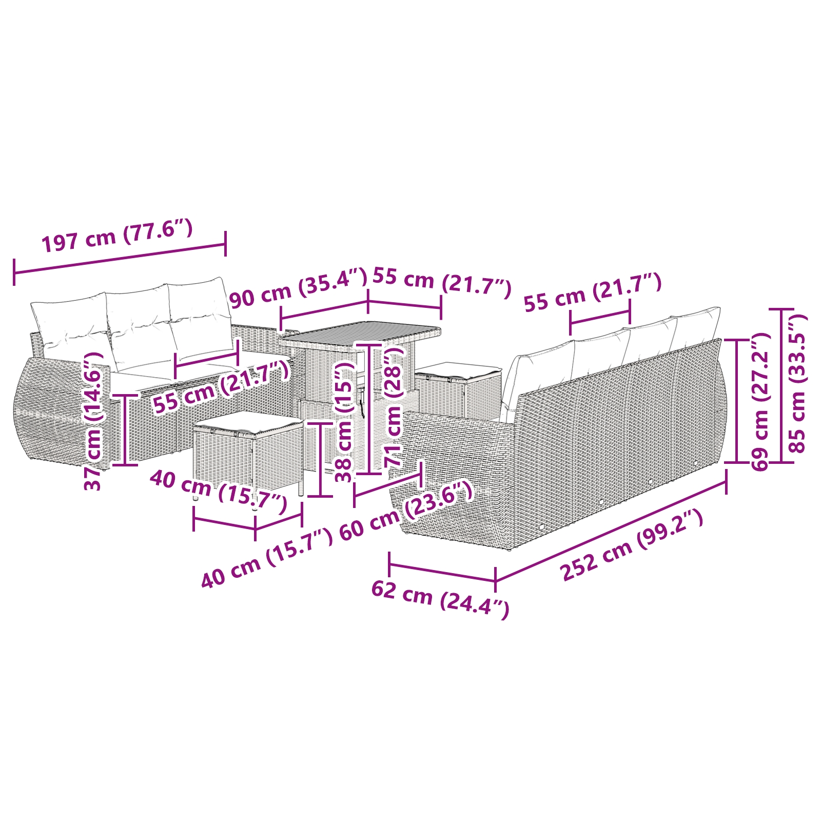• Vysoká kvalita: Vyrobené z odolných materiálov, ako je UV-odolný poly ratan, táto súprava je navrhnutá pre dlhú životnosť a ľahkú údržbu.
