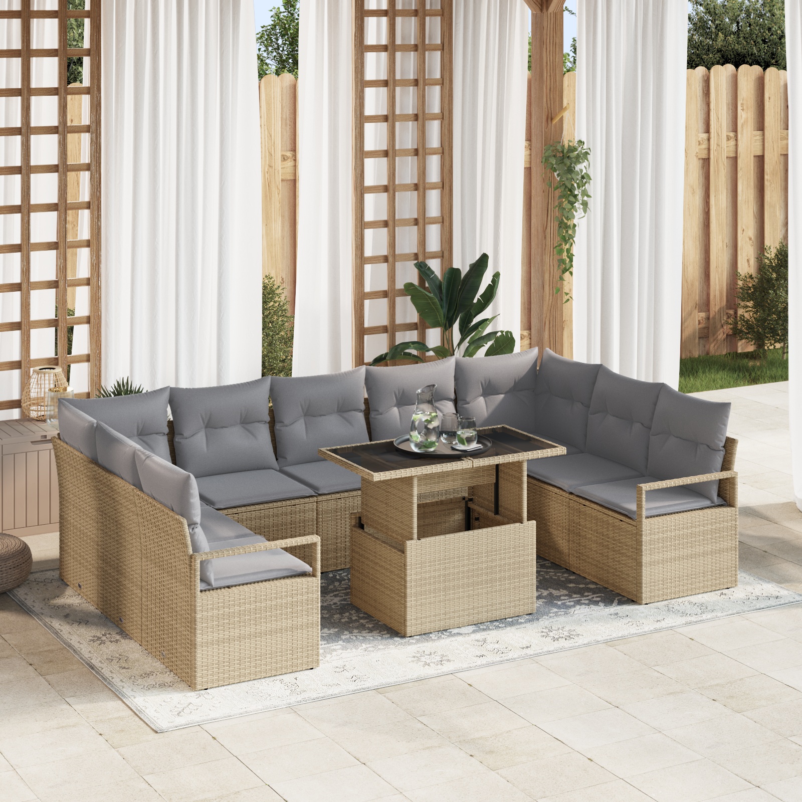 vidaXL 10-dielna záhradná pohovka s vankúšmi Béžový poly ratan