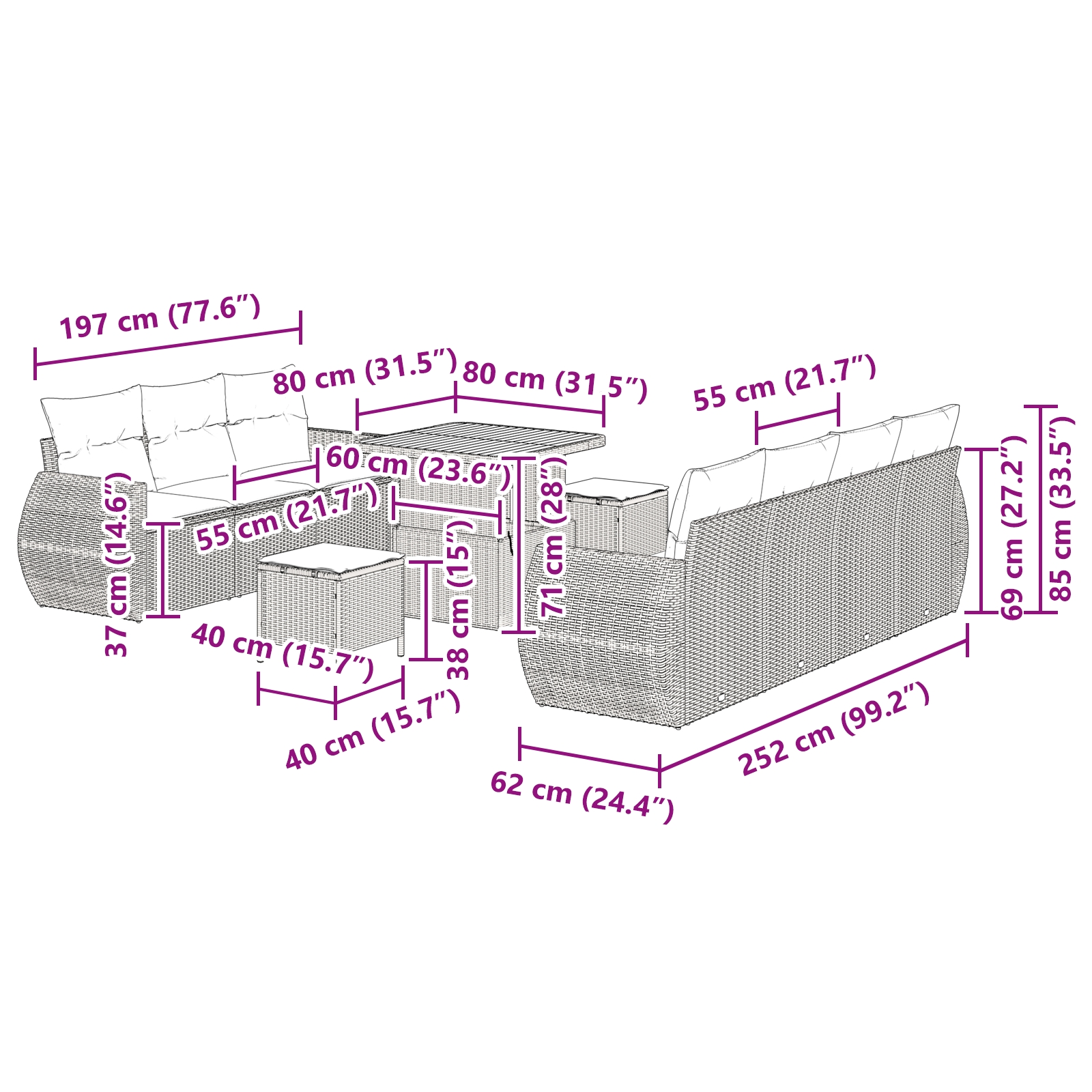 vidaXL 10-dielna záhradná sedacia súprava s vankúšmi, Čierna, poly ratan