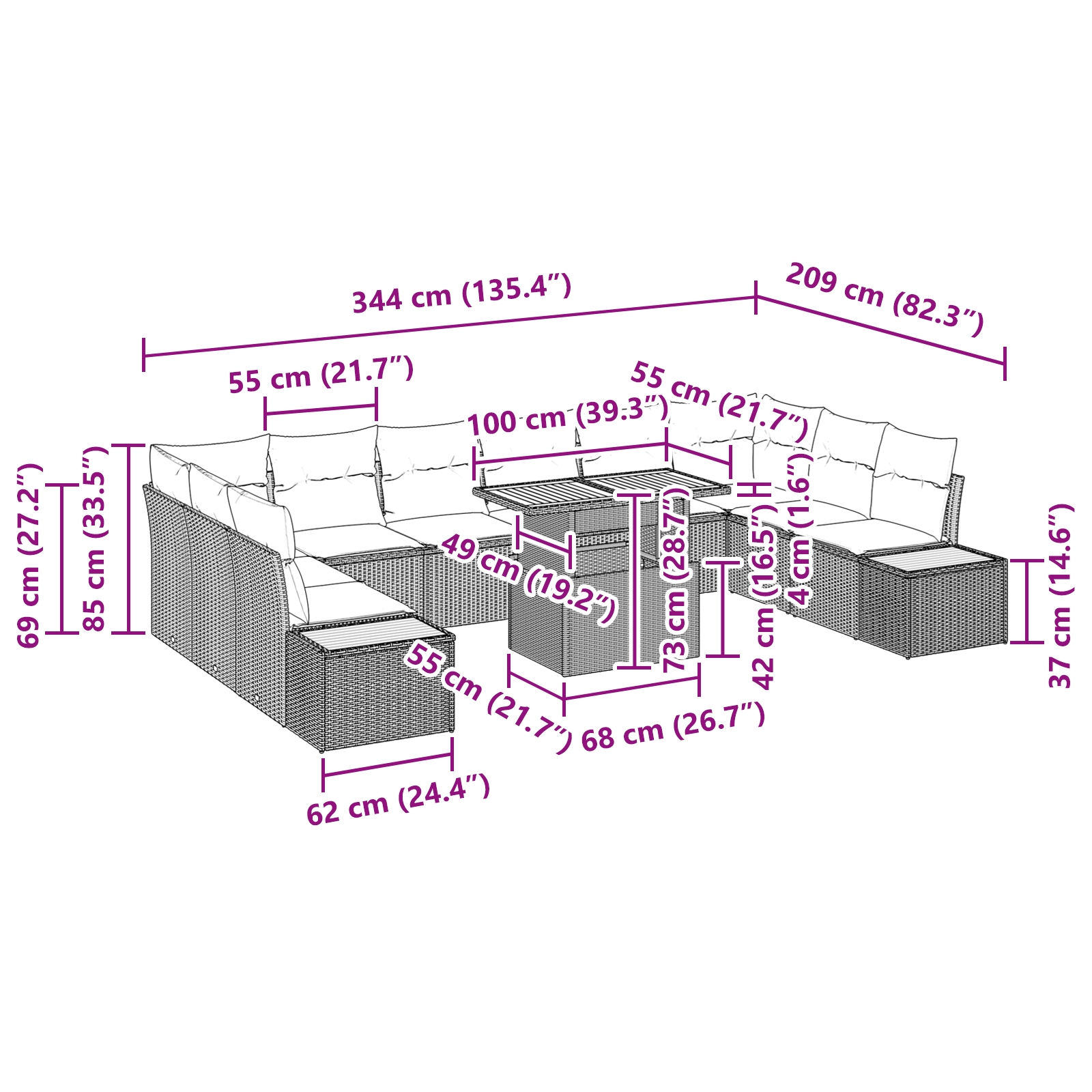 • Delivery Contains: 2 x Side sofa with storage, 2 x Corner seat with storage, 6 x Centre seat with storage, 1 x Garden table