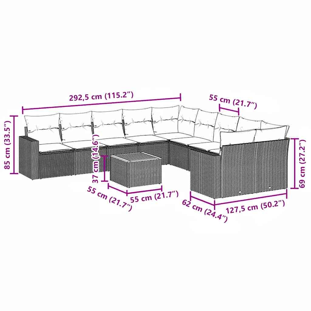 vidaXL 11-dielna záhradná sedacia súprava s podložkami polyratan sivá