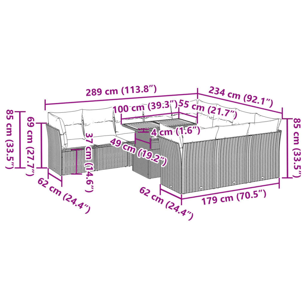 vidaXL 11-dielna záhradná sedacia súprava vankúše polyratan čierna