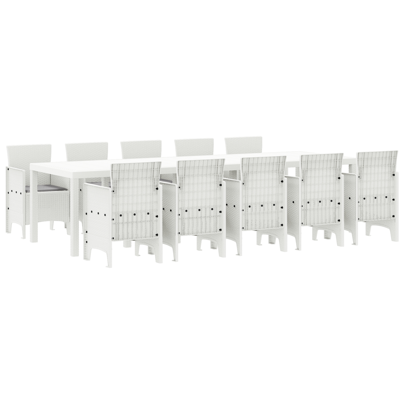 vidaXL 11-dielny záhradný jedálenský set s vankúšmi biela poly ratan, vidaXL záhradný stôl biely 150x100x73 cm poly ratan, vidaXL záhradné stoličky s vankúšmi 2 ks biele poly ratan, vidaXL záhradné stoličky s vankúšmi 4 ks biele poly ratan