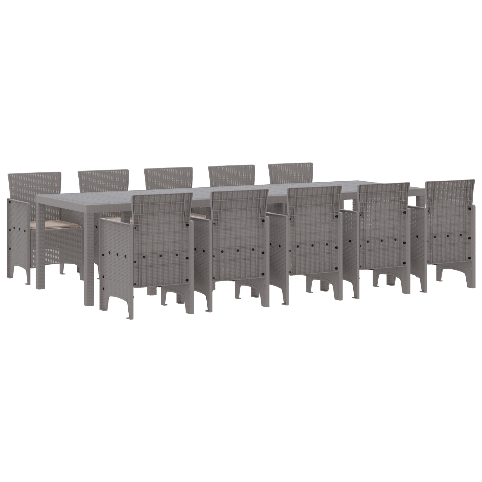 Tento vidaXL 11-dielny záhradný jedálenský set je navrhnutý tak, aby bol moderný a praktický. S pevným obdĺžnikovým stolom a desiatimi pohodlnými stoličkami je ideálny na všetky stretnutia, od grilovačiek po uvoľnené stolovania, pridáva skvelú atmosféru vašej záhrade alebo balkónu.