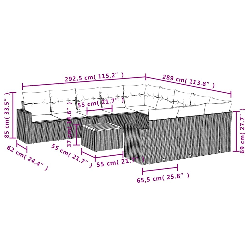 vidaXL 12-dielna záhradná sedacia súprava s vankúšmi sivá polyratanová