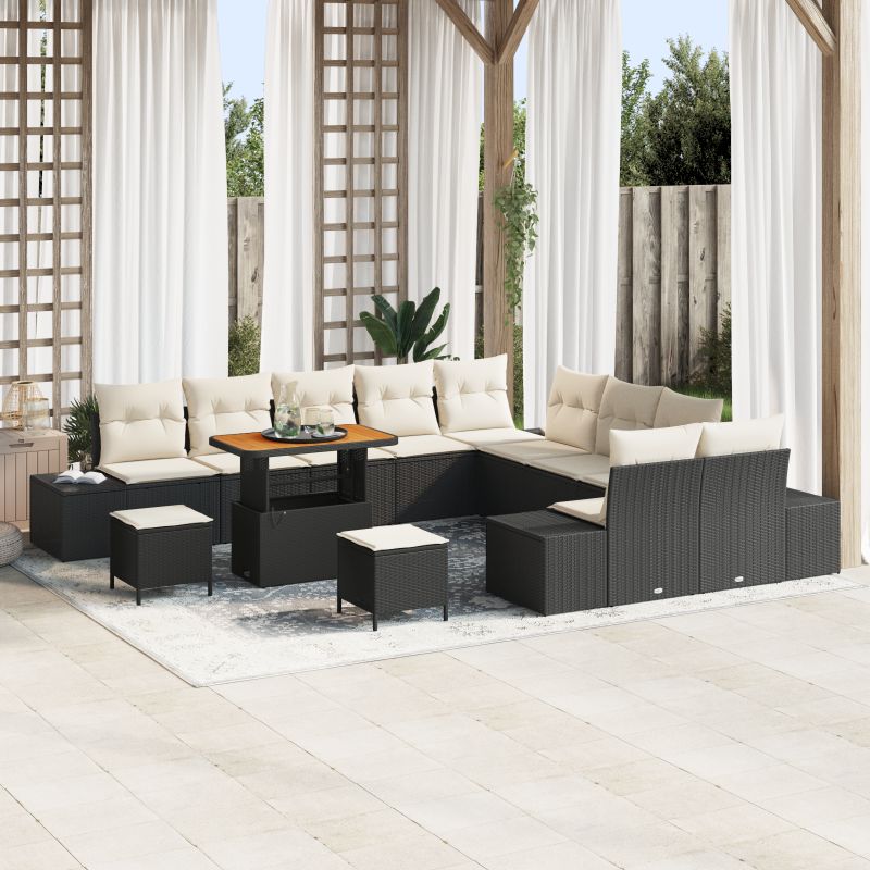 vidaXL 13-dielna sada záhradných pohoviek s vankúšmi čierna poly ratan akácia