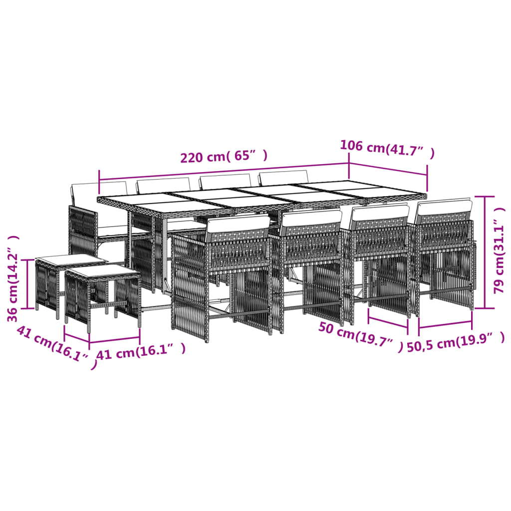 vidaXL 13-dielna záhr. jedálenská súprava s vankúšmi čierna polyratan