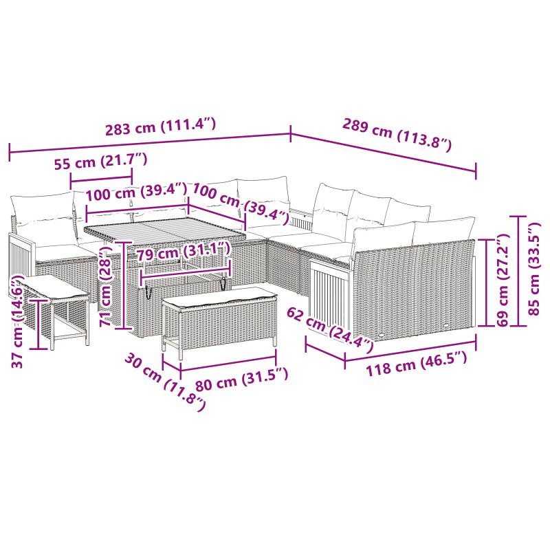 • Tento pohovkový set pohodlne obslúži až 8 ľudí, ideálne na rodinné grilovanie alebo párty.