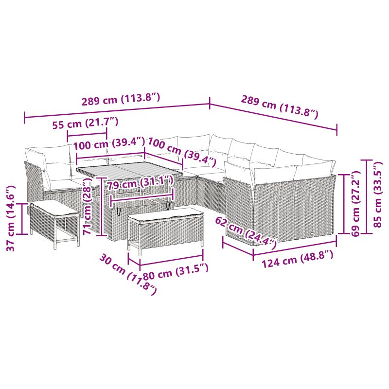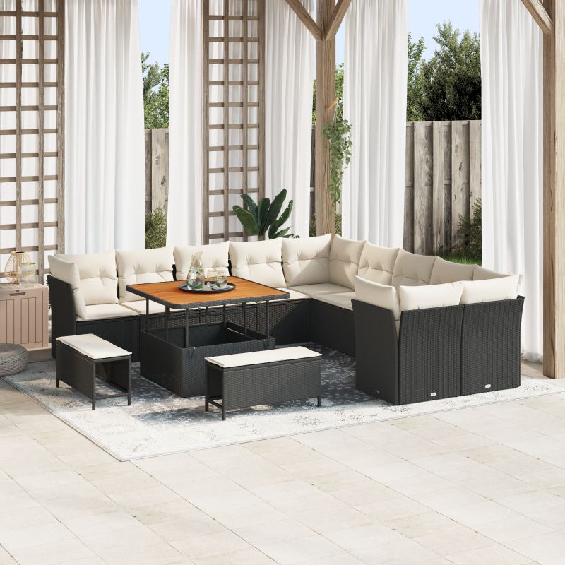 vidaXL 13-dielna záhradná sedacia súprava s vankúšmi čierna poly ratanová acacia