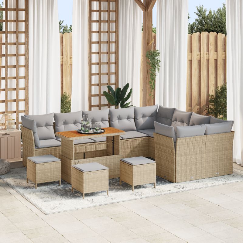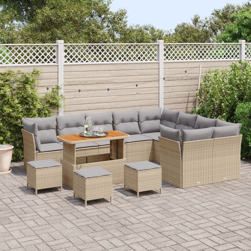 vidaXL 13-dielna Záhradná súprava gauč s vankúšmi Béžová Poly ratan Akácia
