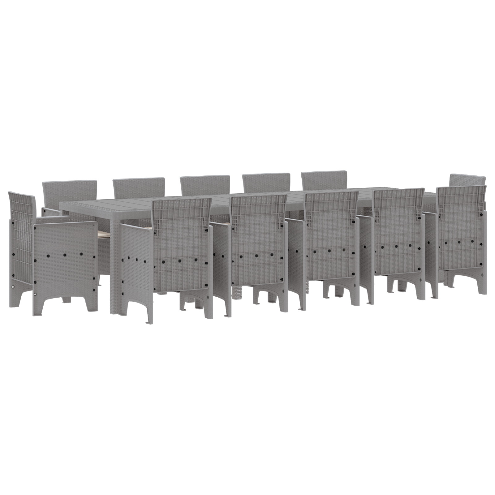 Tento vidaXL 13-dielny záhradný jedálenský set je ideálny pre vonkajšie stolovanie s jeho štýlovým a funkčným dizajnom. S veľkým obdlžníkovým stolom a dvanástimi pohodlnými stoličkami je skvelý na stretnutia, grilovačky alebo len relaxovanie vonku, pričom vytvára príjemnú atmosféru vo vašej záhrade alebo na balkóne.