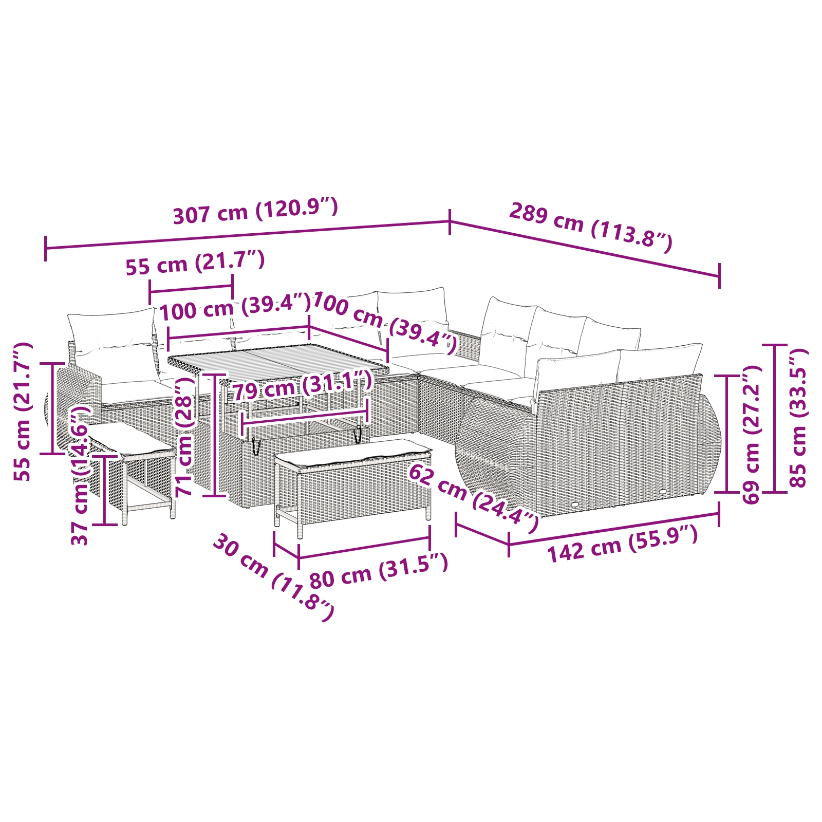 vidaXL 13-dielny záhradný sedací súbor s vankúšmi béžový poly ratan akácia