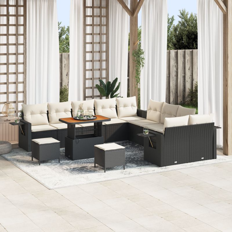 vidaXL 13 kusová súprava záhradných pohoviek s vankúšmi čierny poly ratan akácia