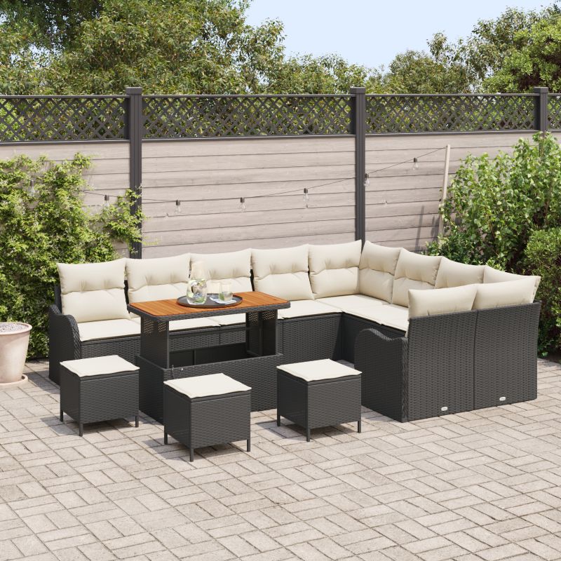 vidaXL 13 kusová súprava záhradných sedačiek s vankúšmi Čierny polyratan Akácia