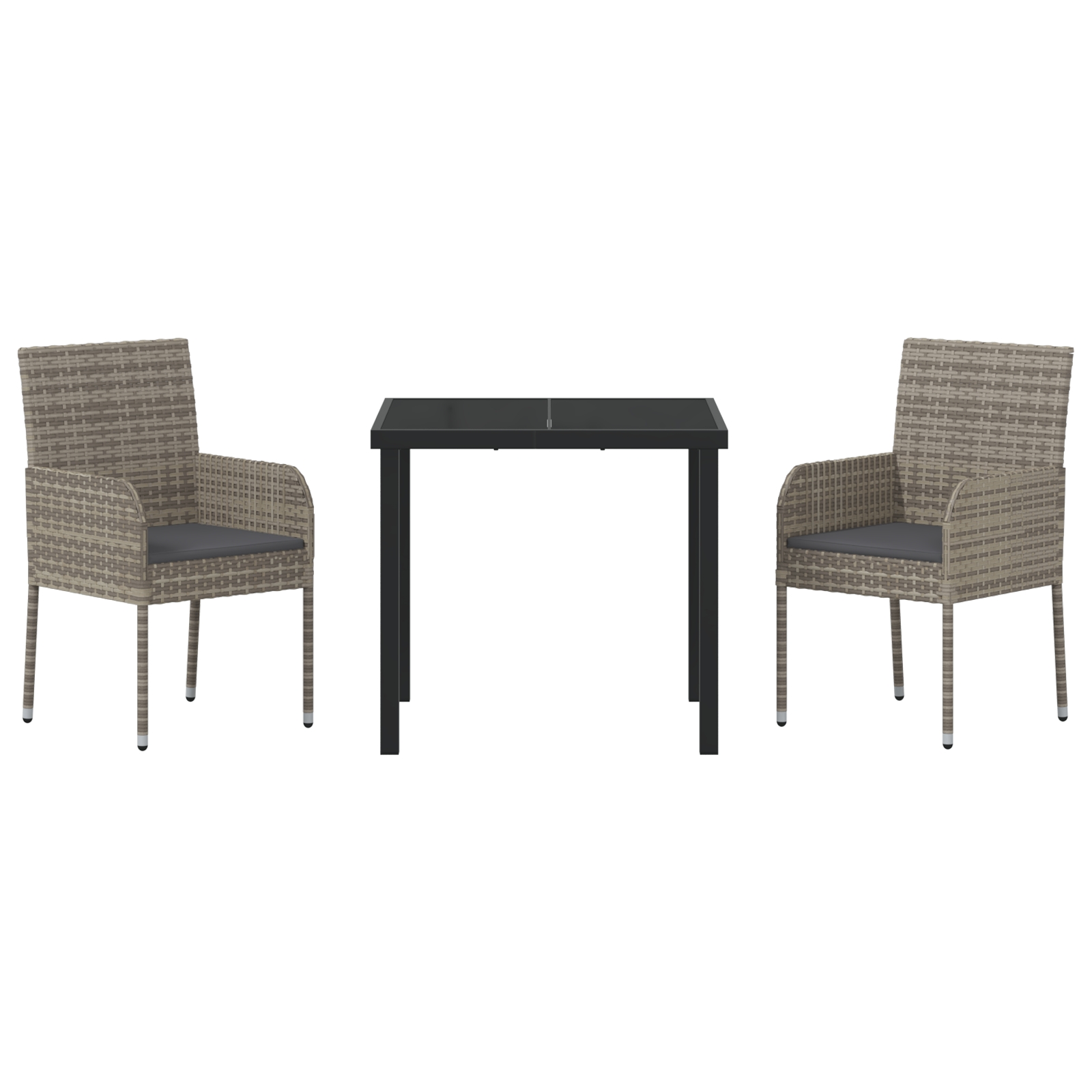 vidaXL 3-dielna jedálenská súprava so vankúšmi, sivý polyratan