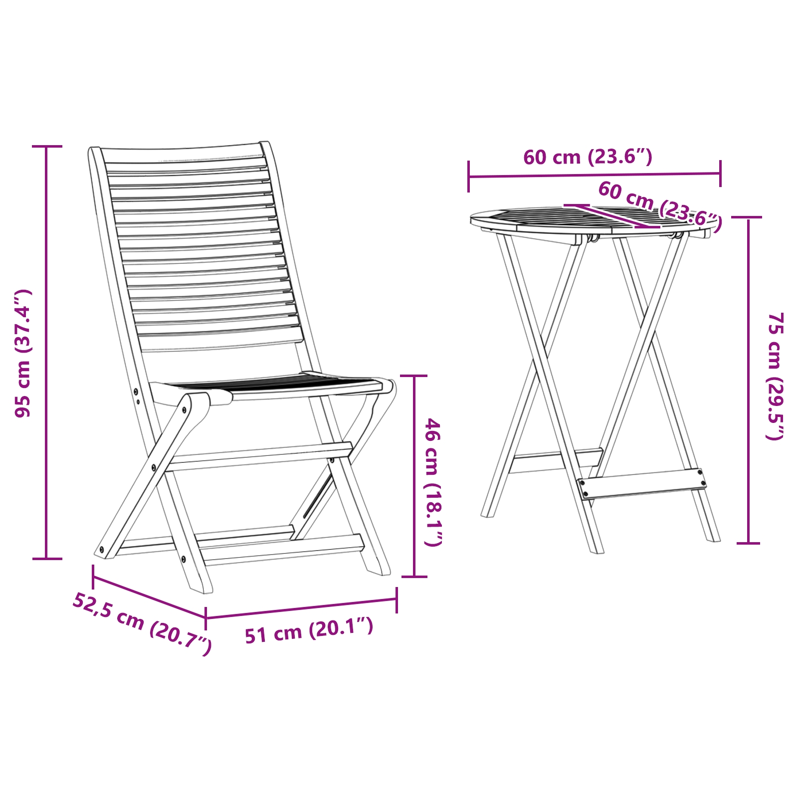 vidaXL 3-dielna skladacia bistro súprava z akáciového masívu