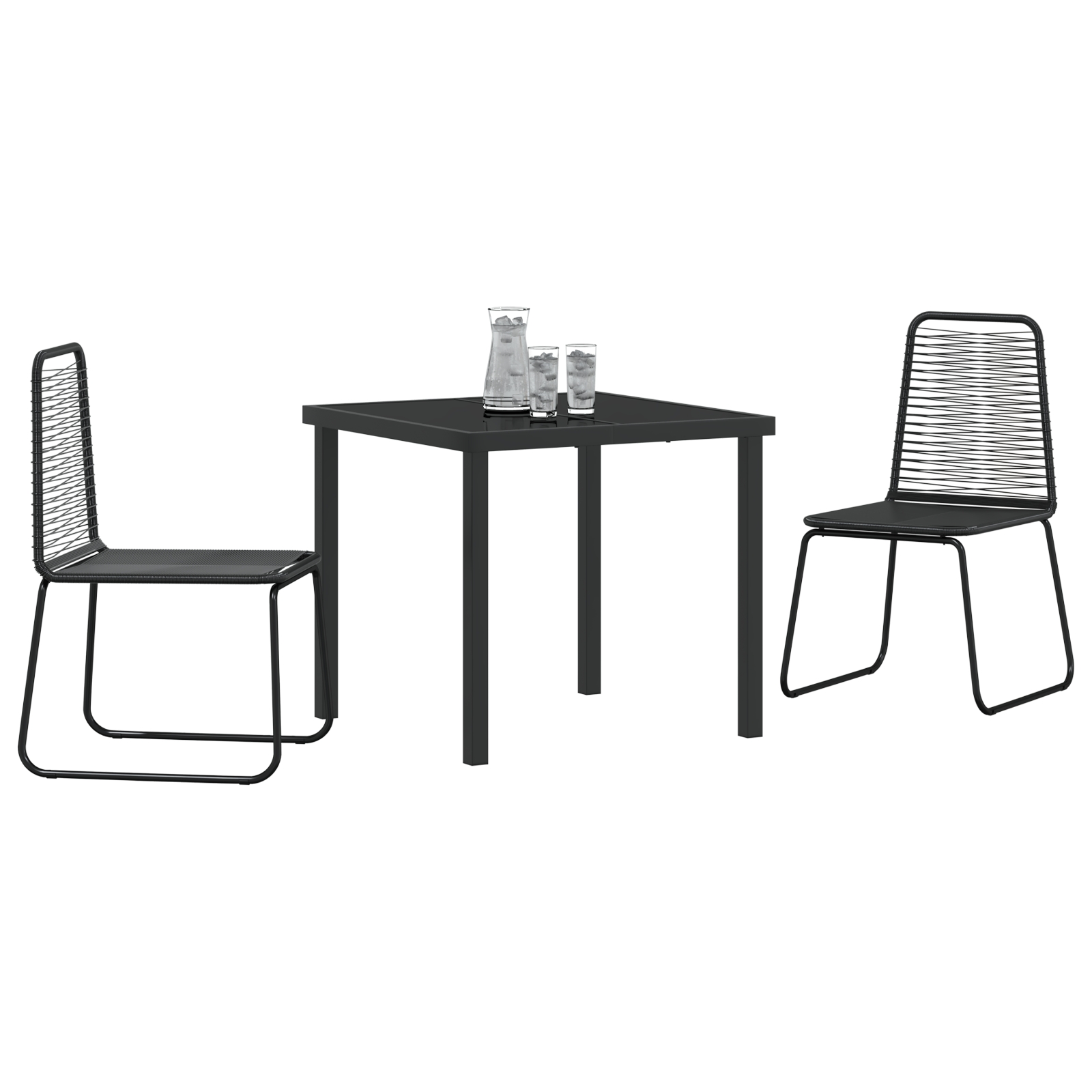 Táto sada obsahuje 2 pohodlné jedálenské stoličky vyrobené z odolného PE ratanu v trendy čiernej farbe. Perfektné na vonkajšie použitie, sú ľahké a jednoduché na čistenie, ideálne pre tvoju záhradu alebo terasu.