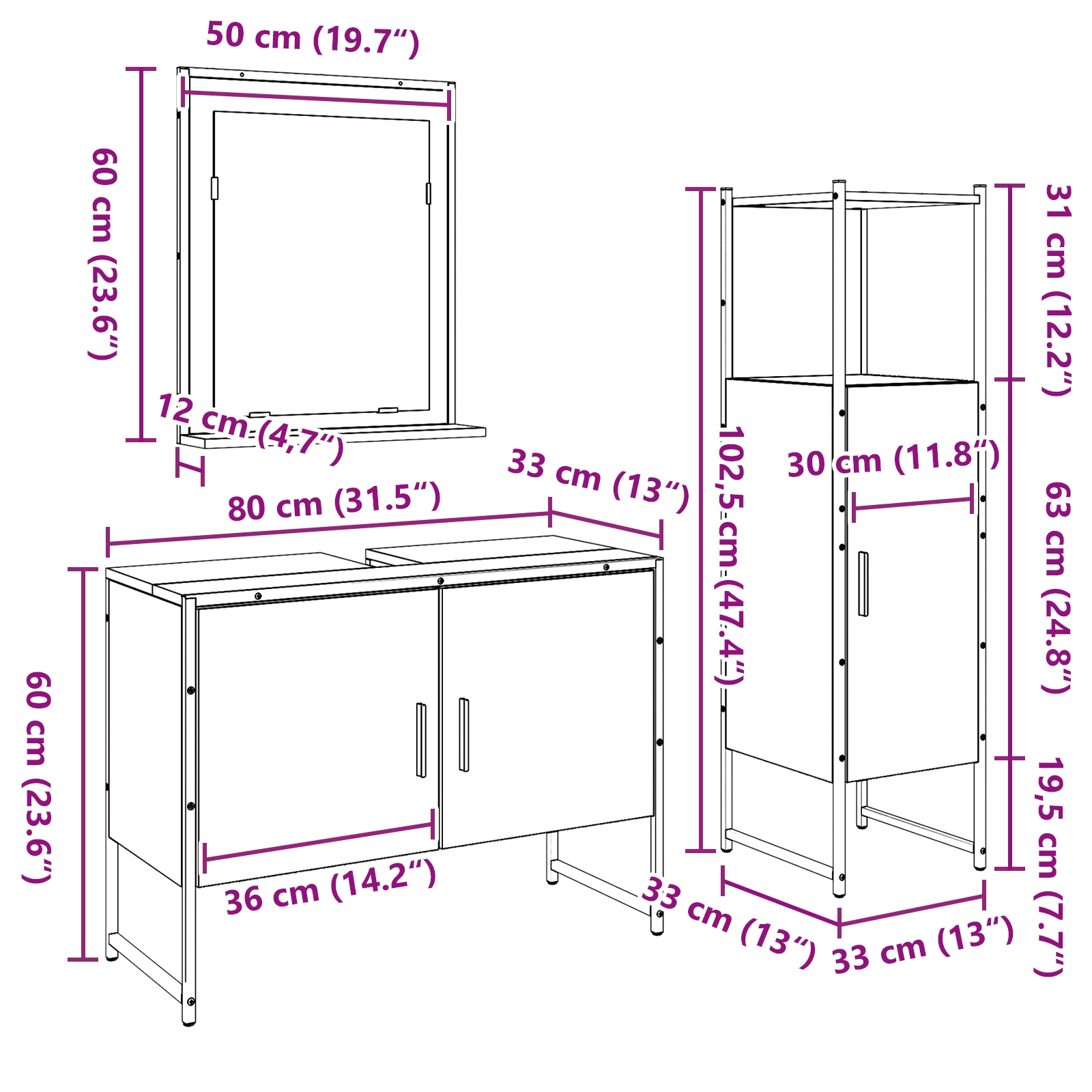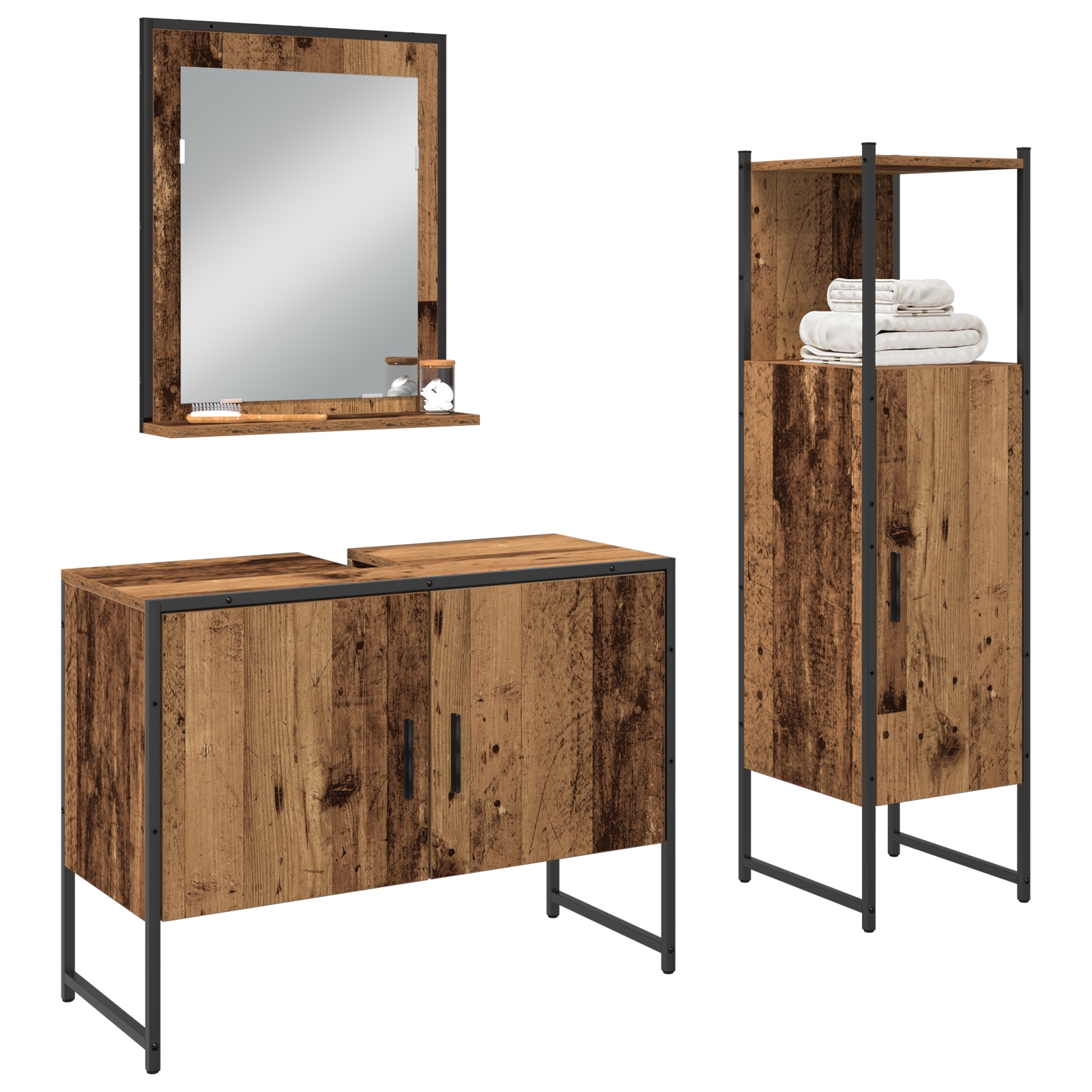 vidaXL 3-dielna súprava kúpeľňového nábytku staré drevo inžinierske drevo