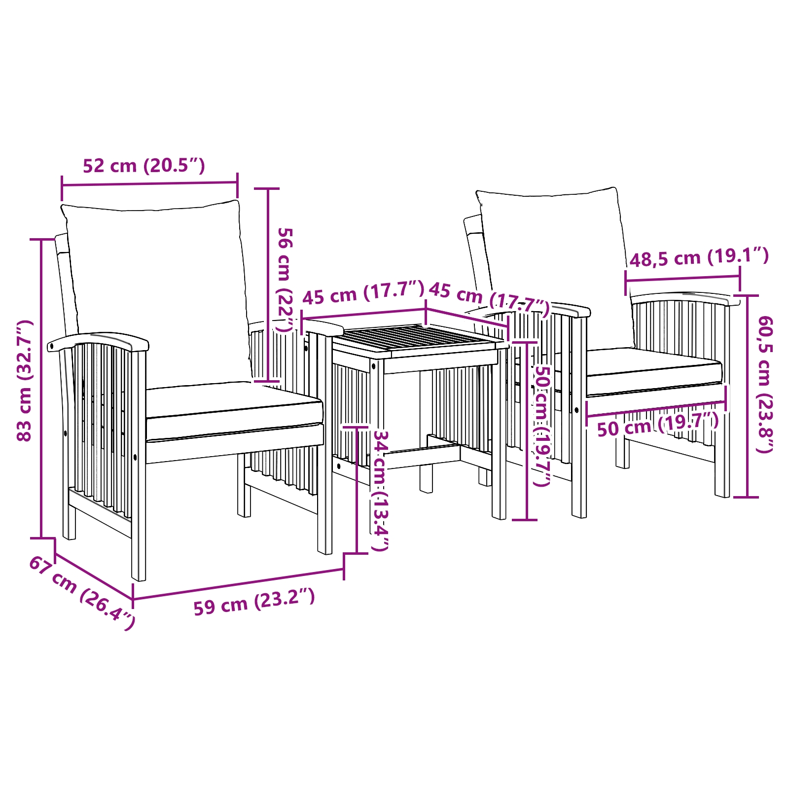 vidaXL 3-dielna súprava záhradného nábytku s vankúšmi z masívneho akáciového dreva