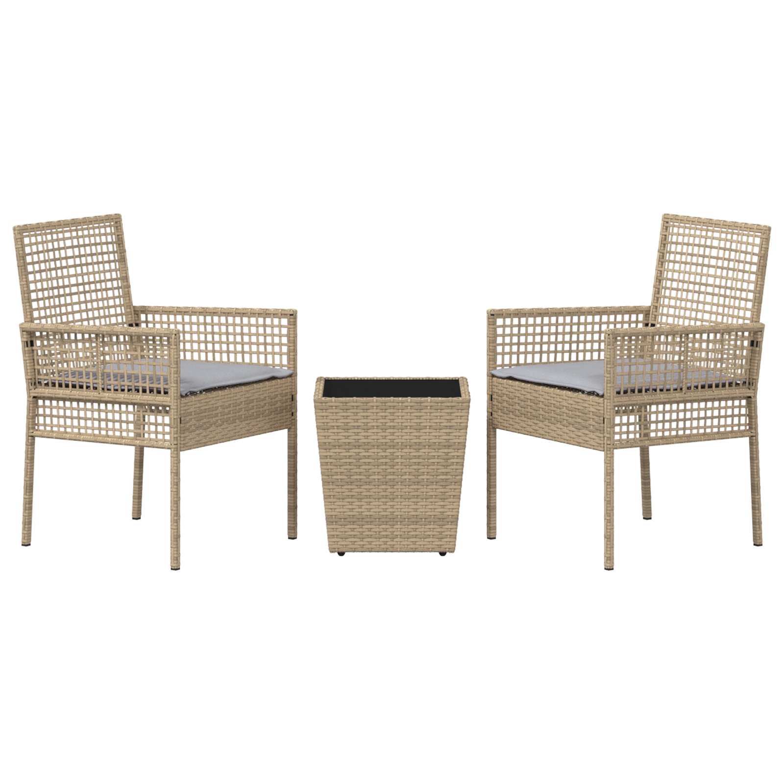 vidaXL 3-dielna záhradná bistro súprava s vankúšmi béžová poly ratan