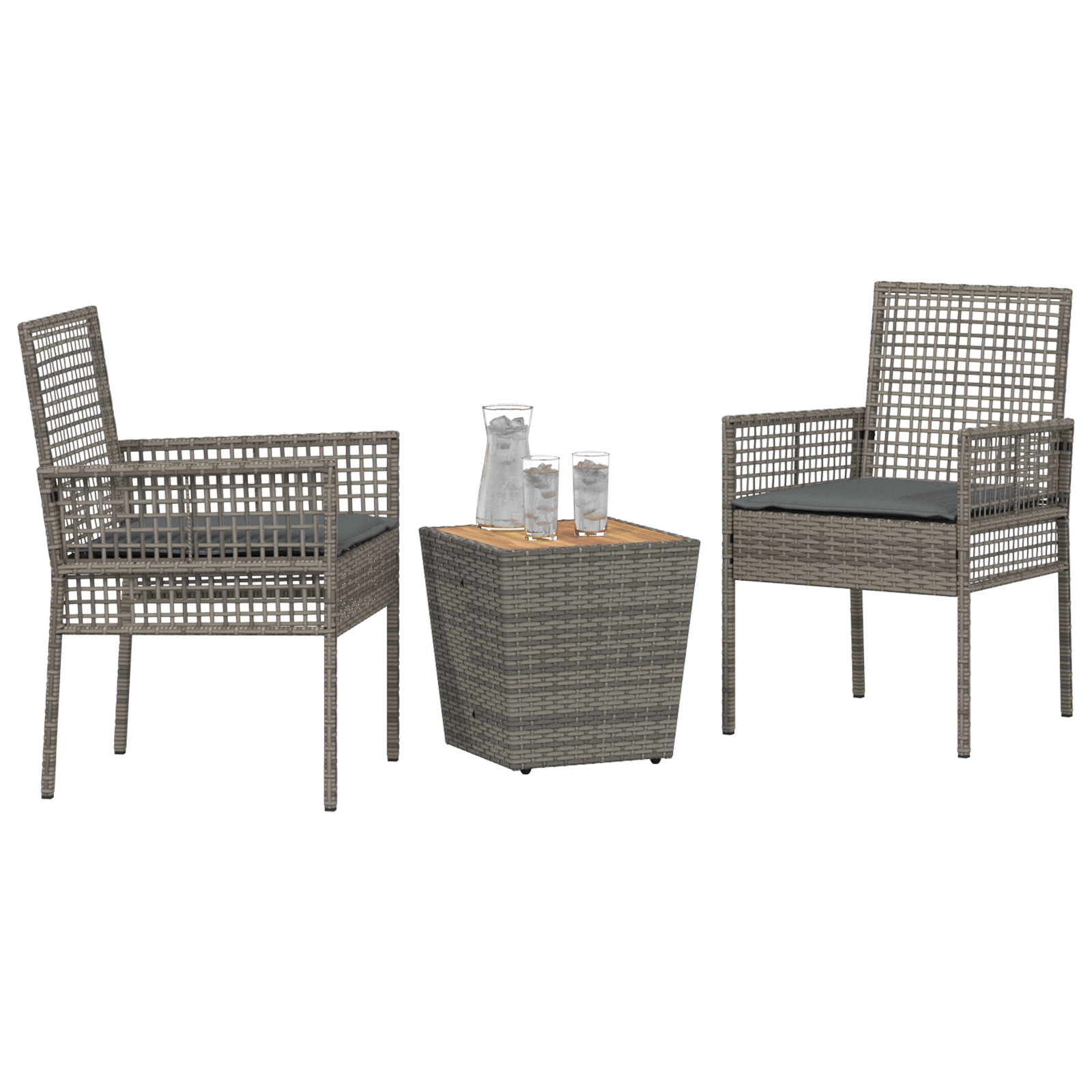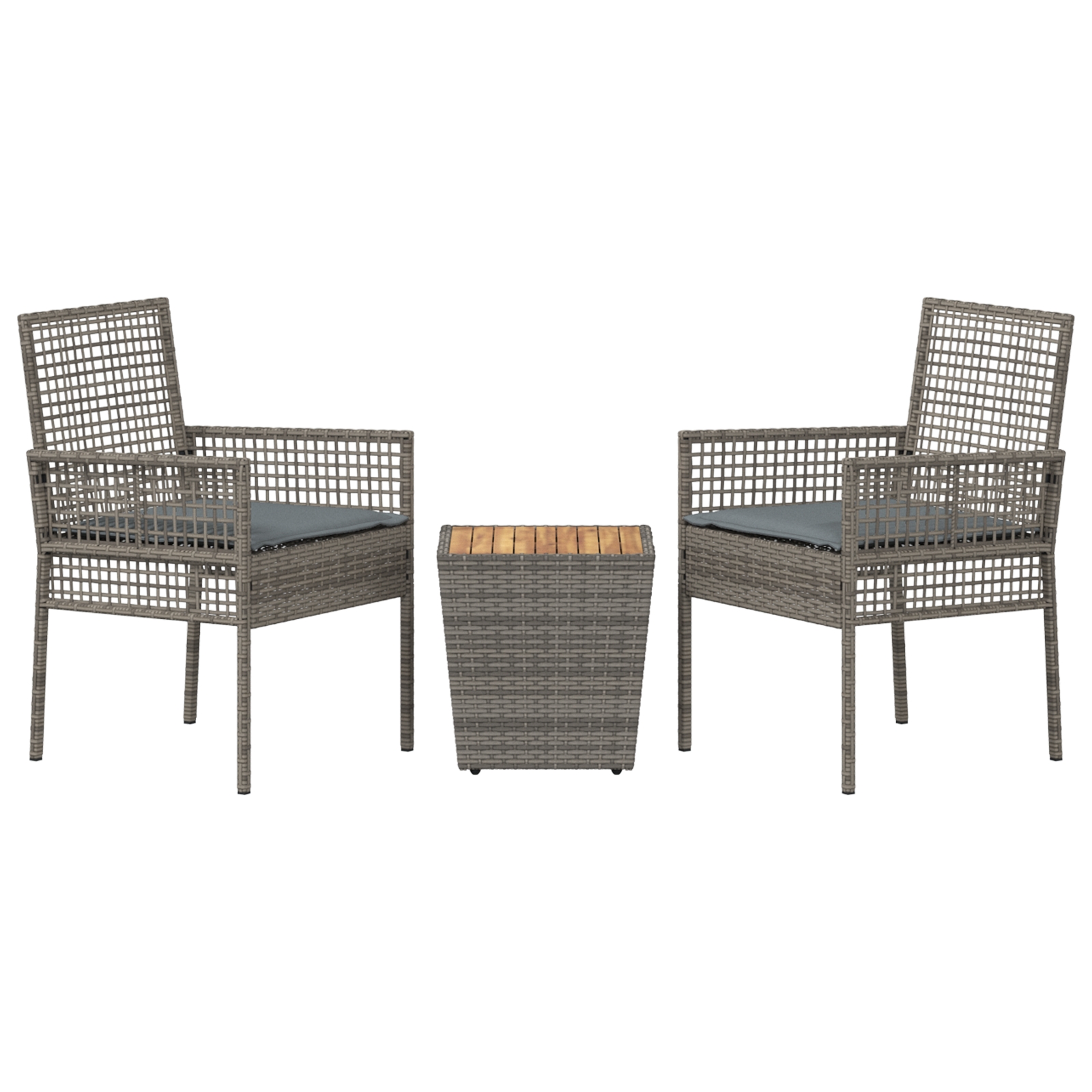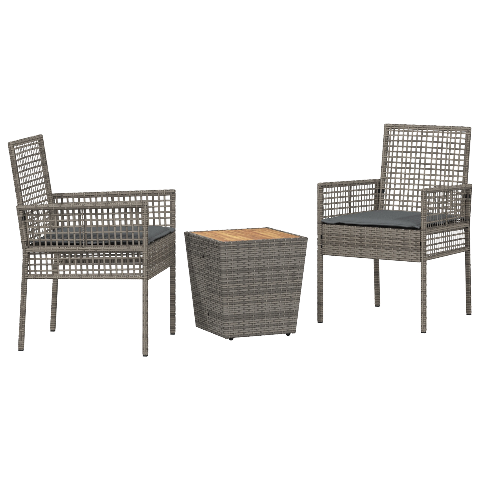 vidaXL 3-dielna záhradná bistro súprava s vankúšmi šedá poly ratan