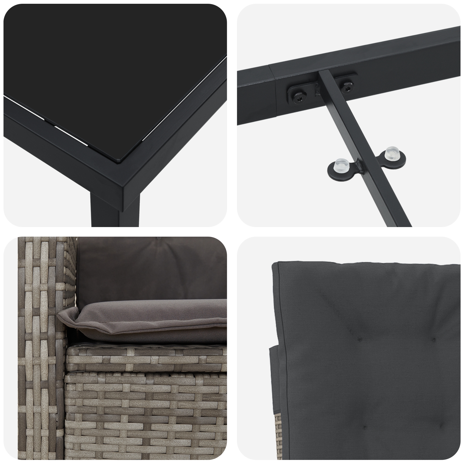 Set týchto polohovacích záhradných stoličiek kombinuje moderný štýl s pohodlím a je skvelý na relaxovanie vonku. Vyrobené z dlhotrvajúceho poly ratanu a podporované pevnou oceľovou konštrukciou, tieto stoličky sú ako stvorené na akékoľvek patio, balkón alebo do záhrady. Štýlovej sivej a tmavosivej farby dodávajú vášmu vonkajšiemu priestoru pekný vzhľad a sú perfektné na stretnutia alebo pokojný odpočinok.