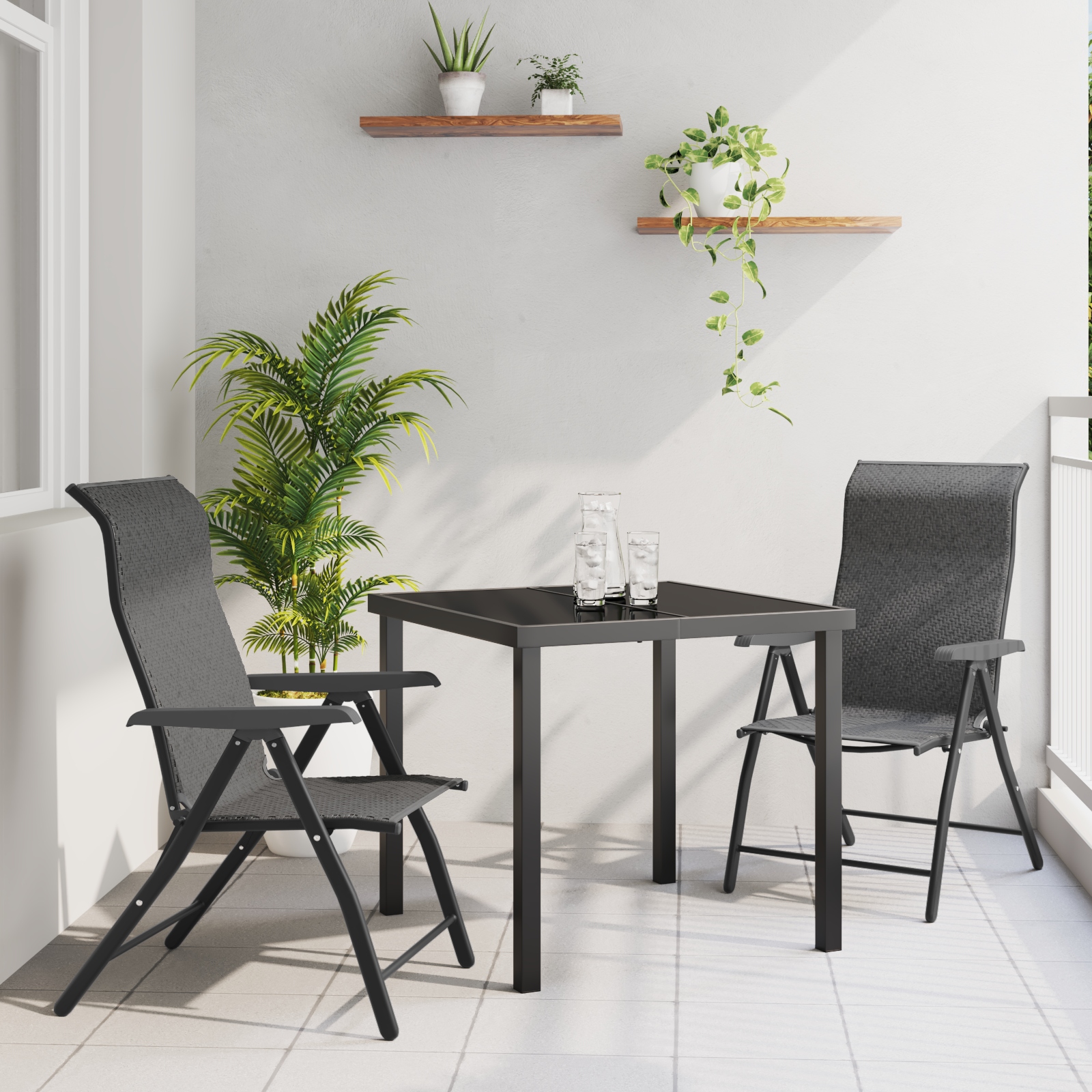 Tato súprava skladacích záhradných stoličiek spája štýl a funkčnosť, ideálne pre každú vonkajšiu plochu ako sú terasy, balkóny alebo záhrady. Stoličky sú štýlové a moderné, a ponúkajú ti pohodlné sedadlo na stolovanie, čítanie alebo užívanie si čerstvého vzduchu s kamoškami.