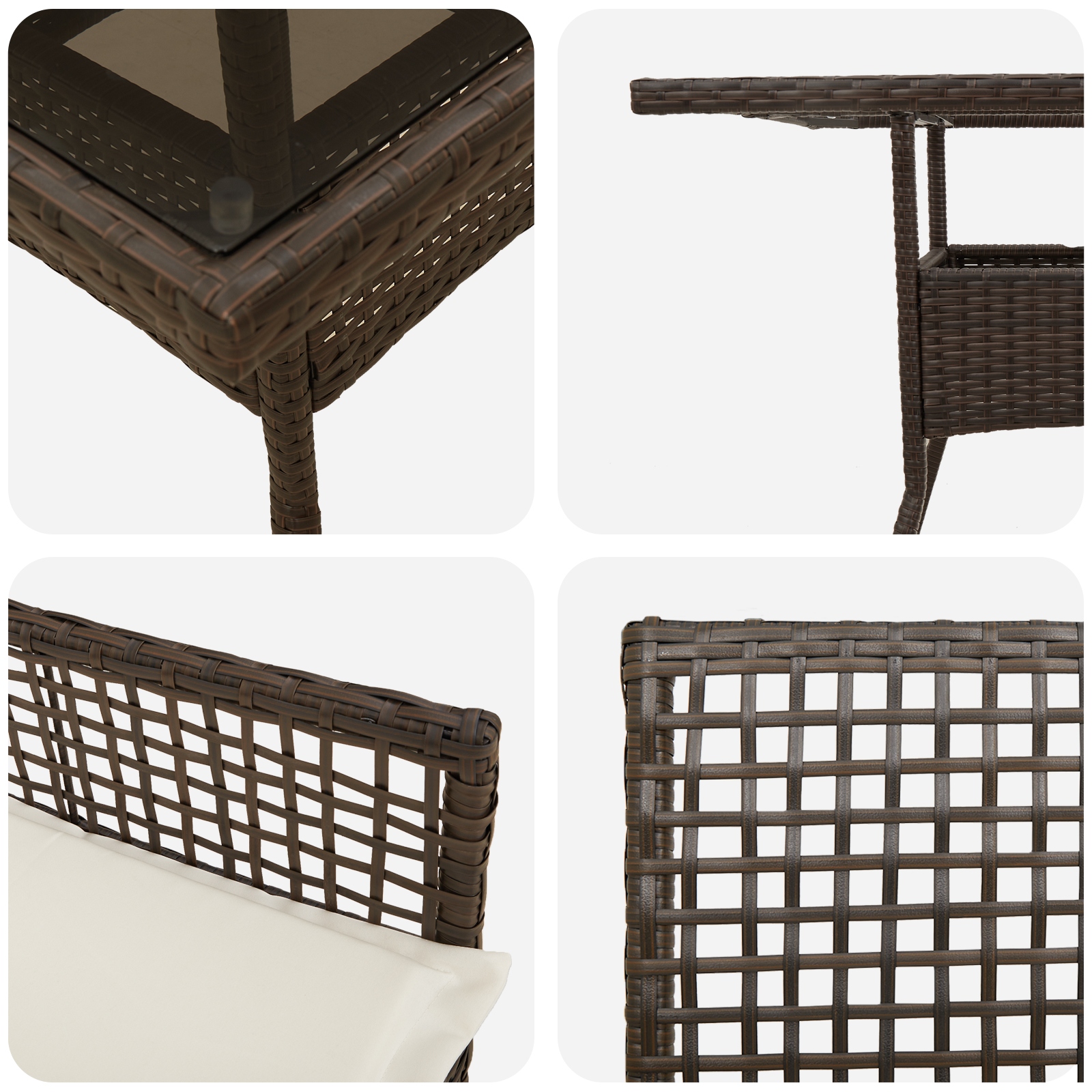 • Kompaktná veľkosť: Ideálny pre menšie vonkajšie priestory, tento set je skvelý na balkóny alebo útulné záhrady, poskytuje pekné miesto na jedenie bez zaberania príliš veľa miesta.