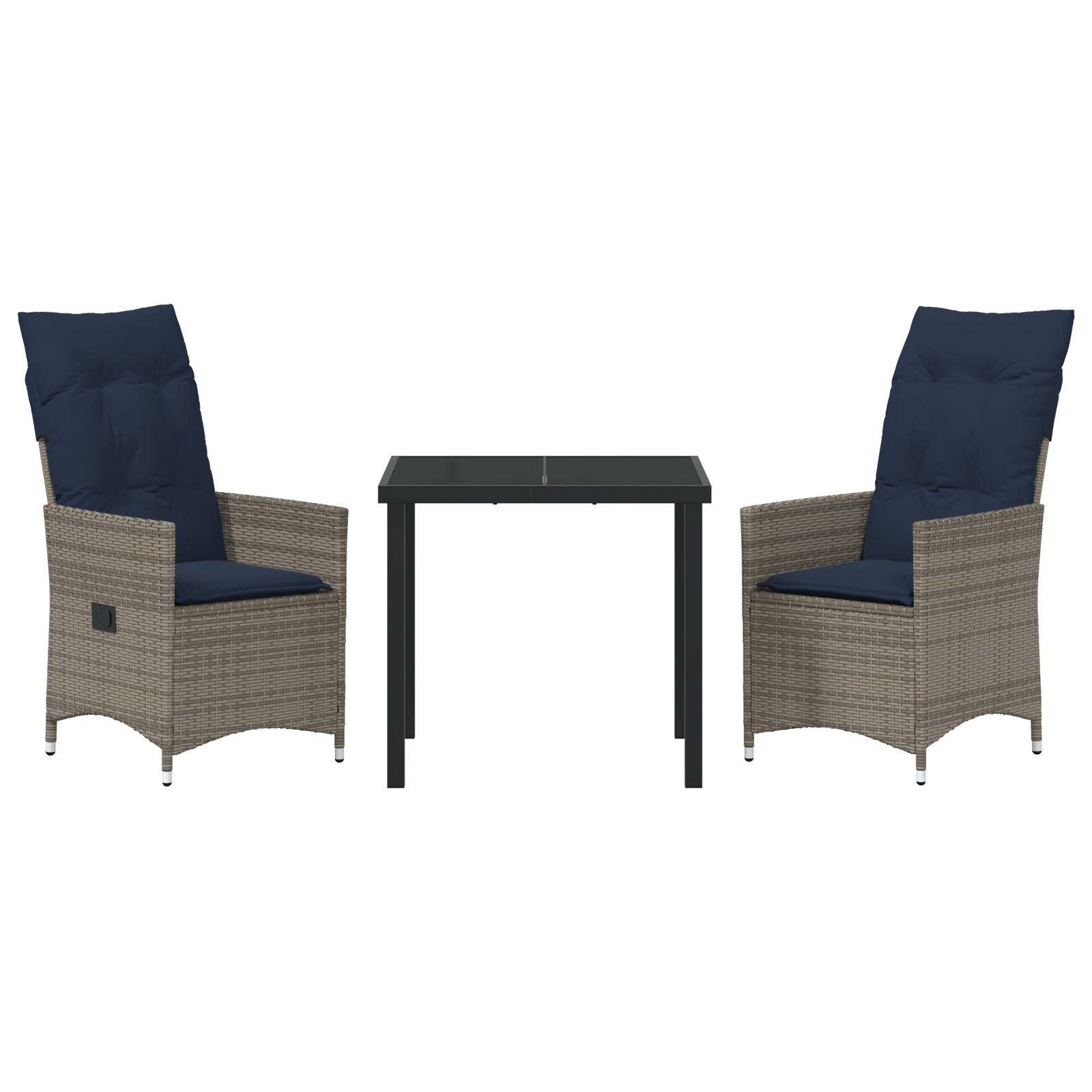 vidaXL 3-dielny záhradný jedálenský set s vankúšmi Šedý poly ratan, vidaXL Záhradný stôl Čierna 80x80x73 cm Temperované sklo