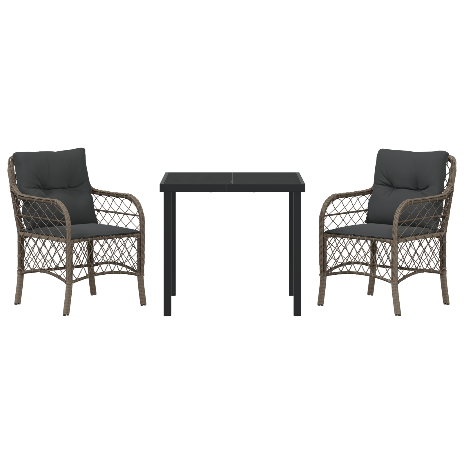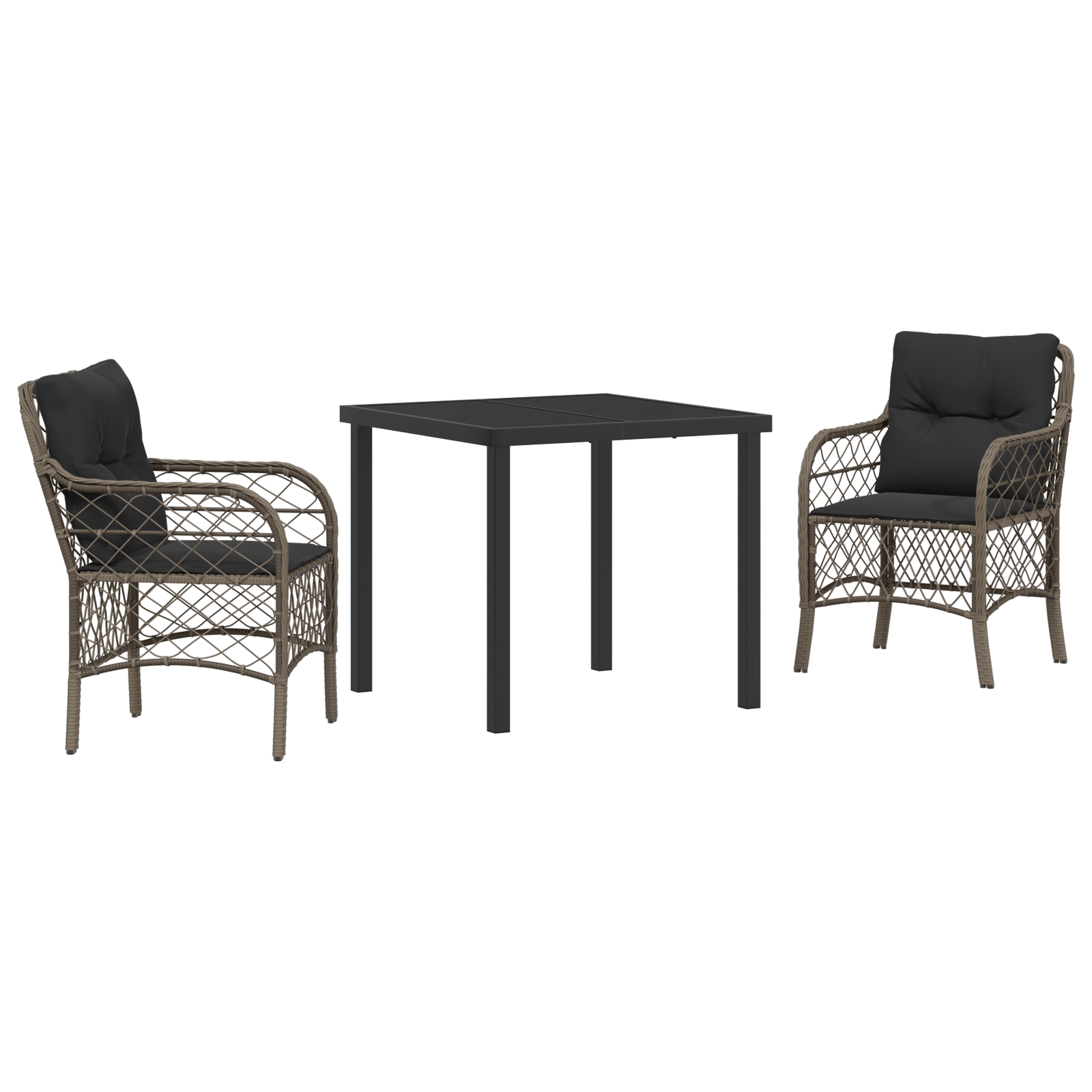 vidaXL 3-dielny záhradný jedálenský set s vankúšmi sivý poly ratan