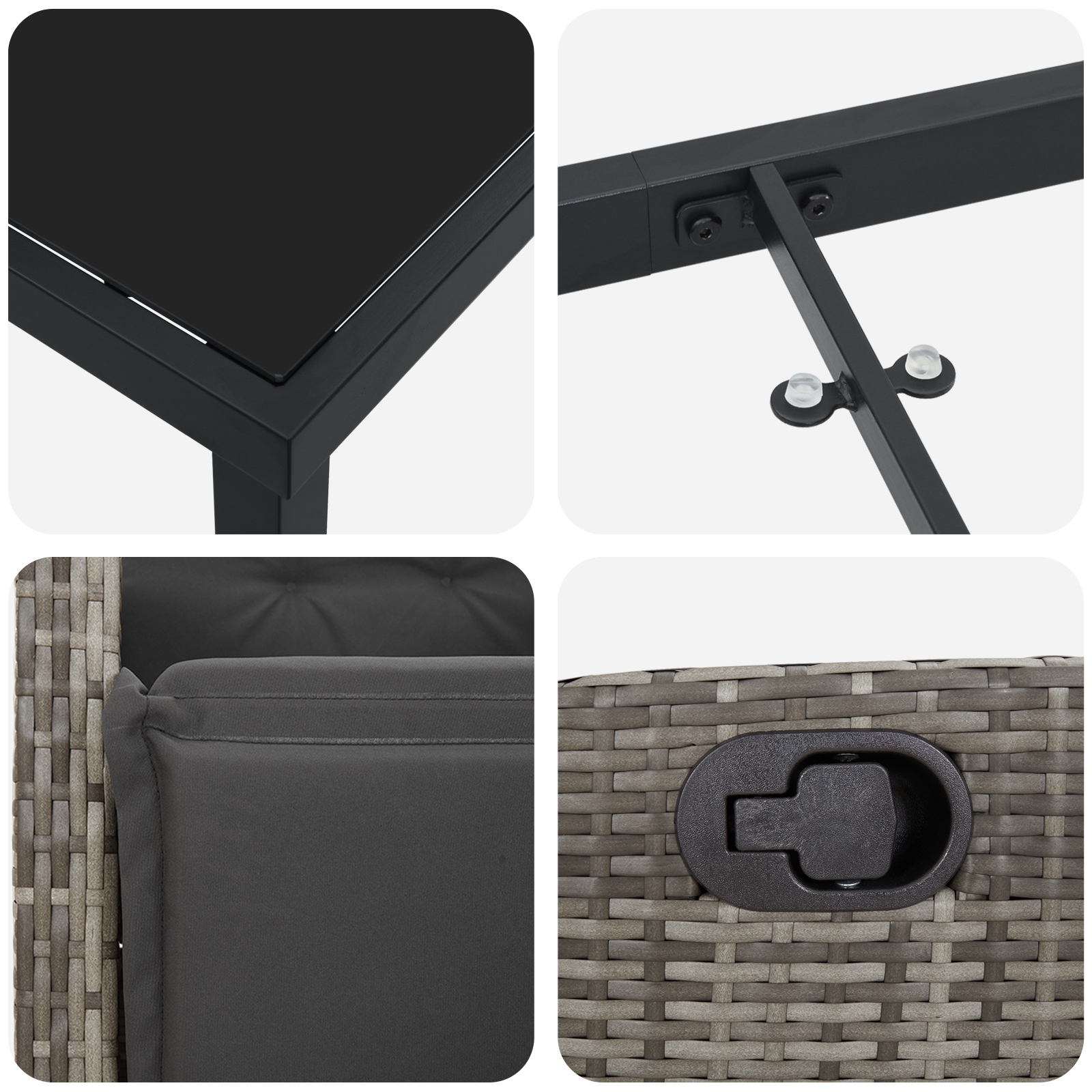 Tento pár sklopených záhradných stoličiek spojuje moderný štýl a pohodlie, čo ti poskytne najlepšie sedenie pre tvoj vonkajší priestor. Vyrobené z odolného PE ratanu a pevného rámu s práškovou povrchovou úpravou sú štýlovým a pozývajúcim miestom na odpočinok na tvojom patiu, balkóne alebo terase.