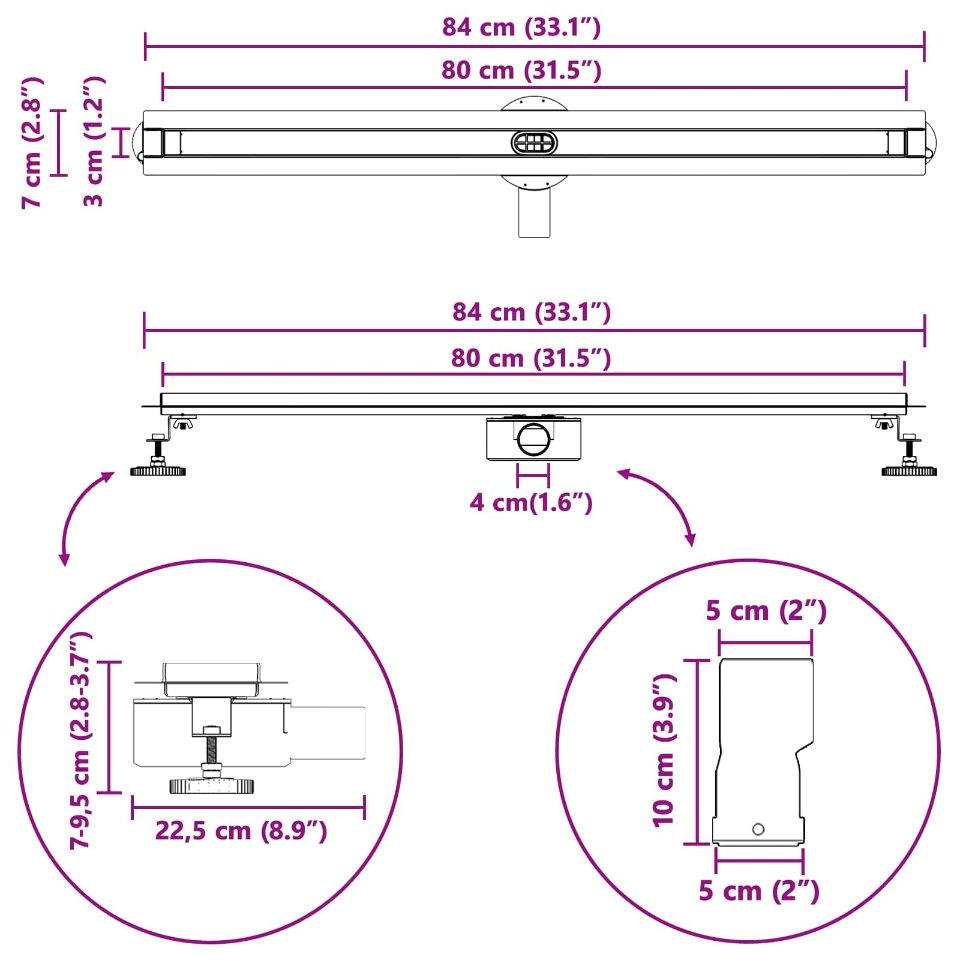 vidaXL 360° sprchový odtok so štíhlym modelom Strieborná 80 cm vidaXL 360° sprchový odtok so štíhlym modelom Strieborná 80 cm