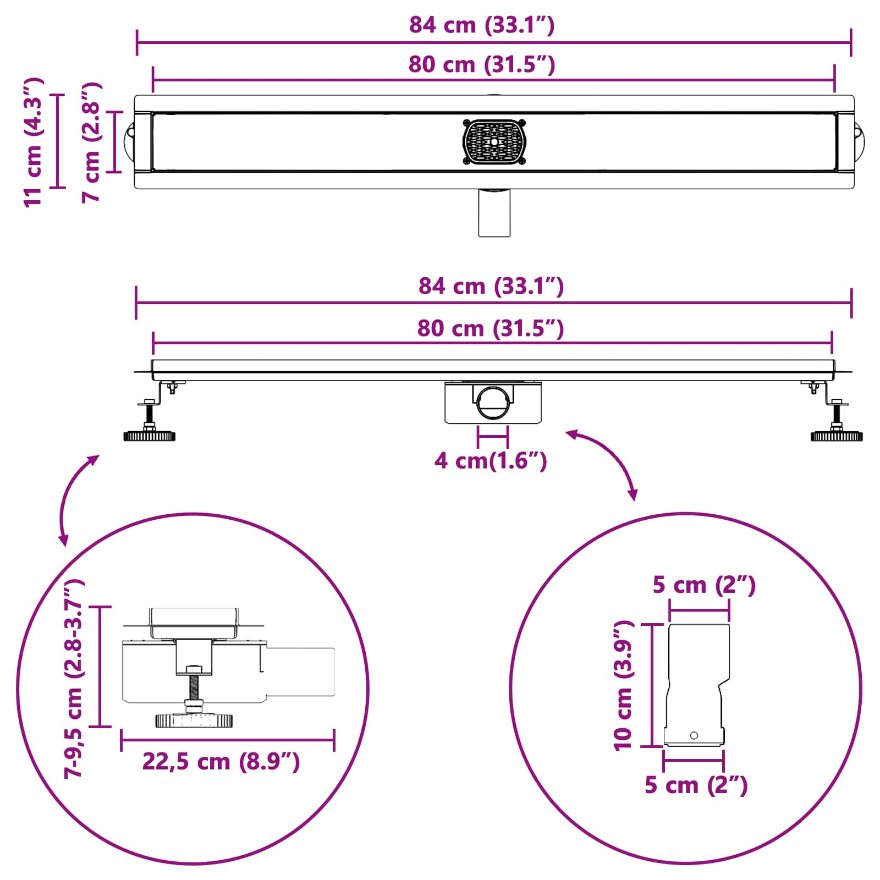 • Všestrannosť pre kúpeľne Tento sprchový odtok sa perfektne hodí do rôznych štýlov kúpeľní, či už máte minimalistický design, alebo niečo sofistikovanejšie.