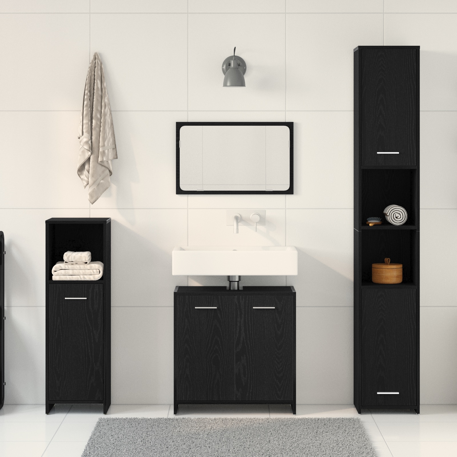 Oživ svoju kúpeľňu trendovou a praktickou 4-dielnou súpravou vidaXL v čiernom dubu. Je navrhnutá tak, aby spojila efektívnosť s krásou a pomohla ti maximálne využiť priestor.