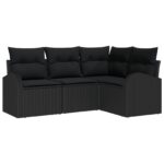 vidaXL 4-dielna záhradná pohovka s vankúšmi Čierna Poly Ratan