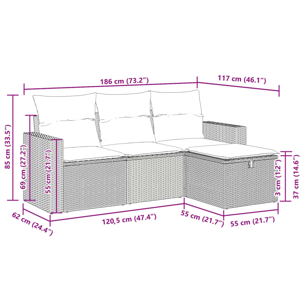 vidaXL 4-dielna záhradná sedacia súprava s vankúšmi hnedá polyratanová